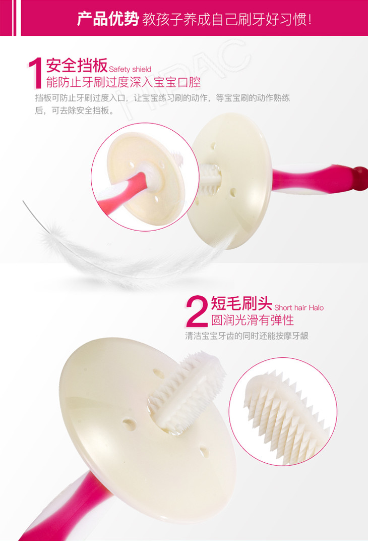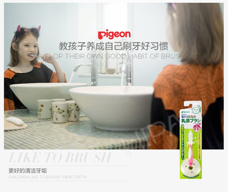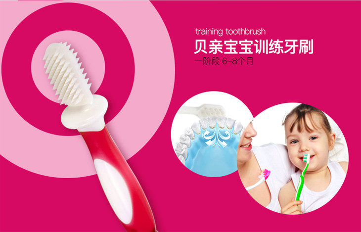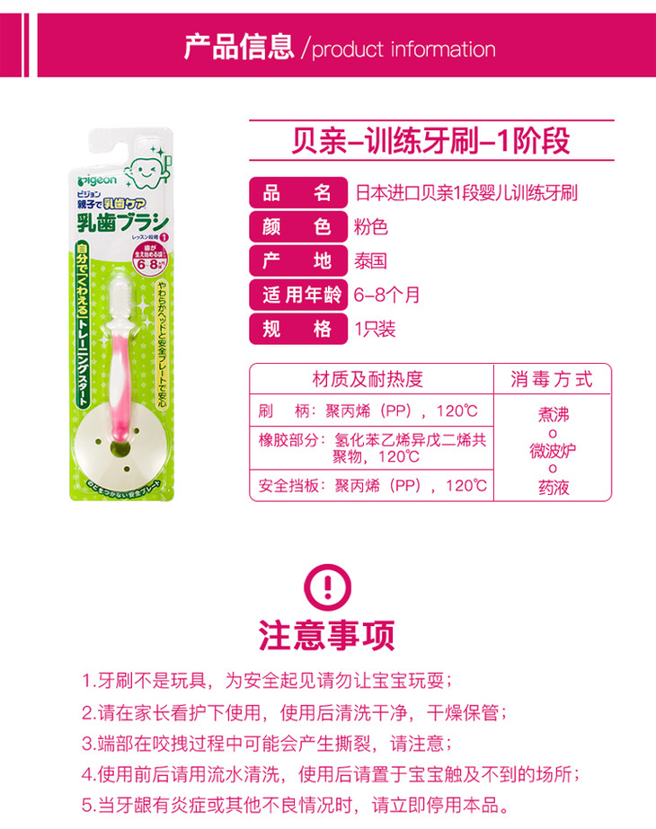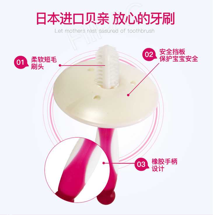【一般贸易】日本贝亲Pigeon 婴儿一阶段乳齿训练牙刷 6-8个月 粉色一支装
