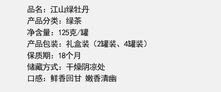 【山歌郁选】 江山绿牡丹 原生态高山特级茶叶 礼盒装 125克/罐 4罐礼盒装 2罐礼盒装