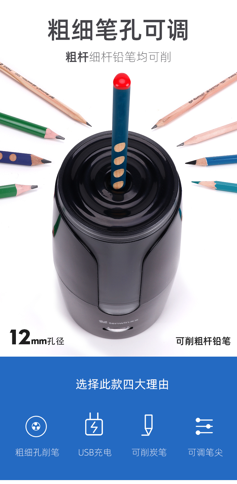 【3月积分加钱购】天文电动转笔刀 黑色*1