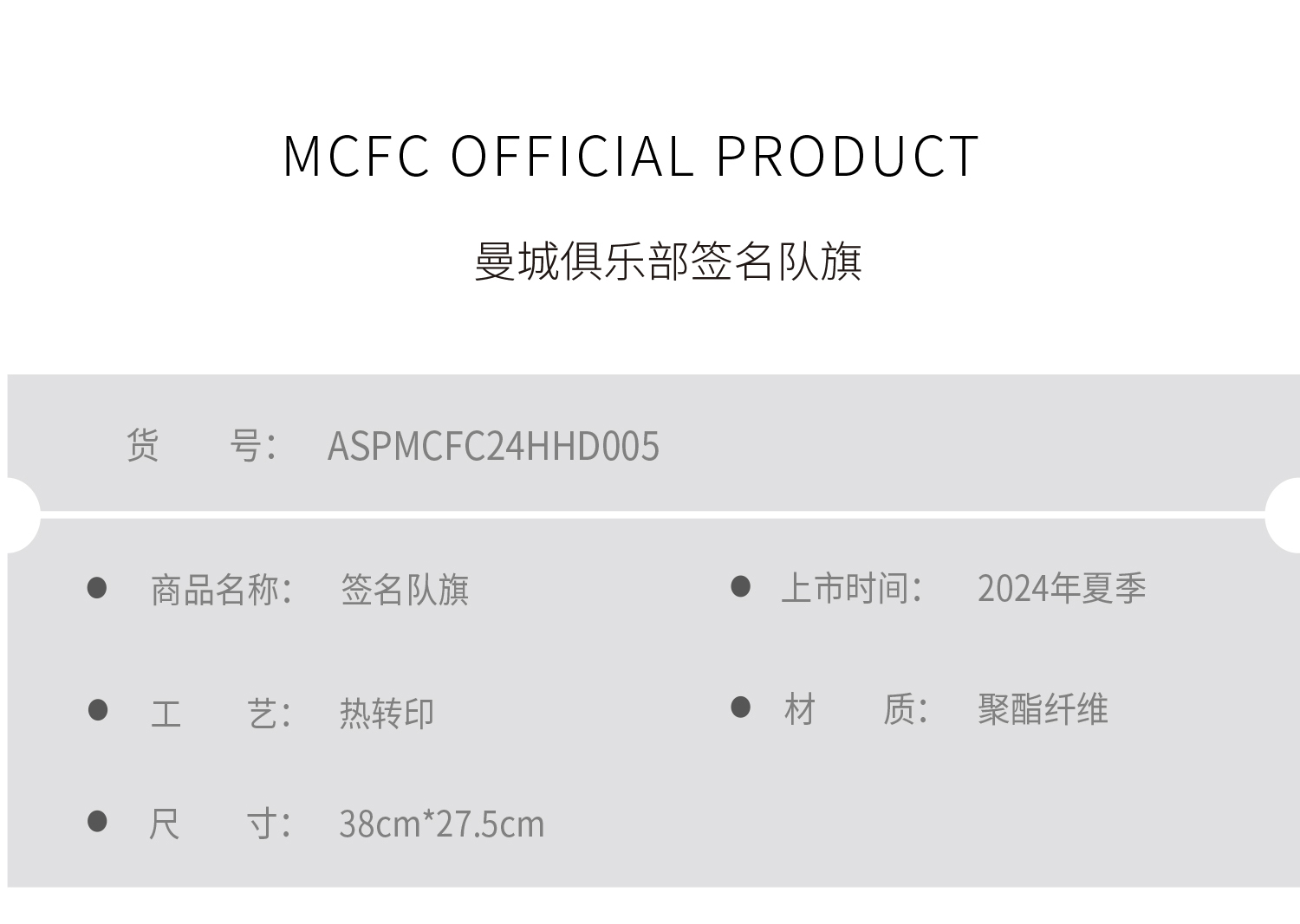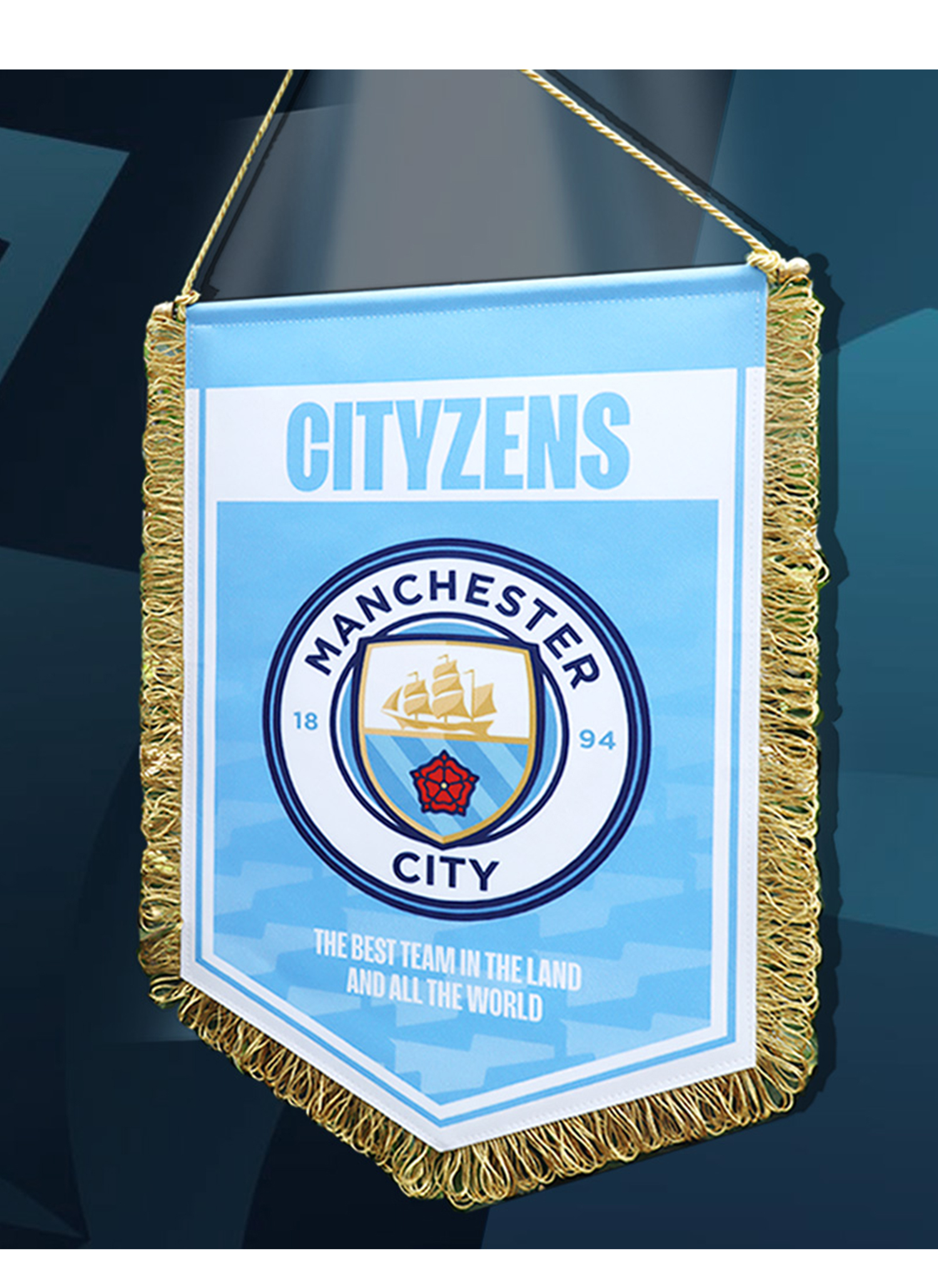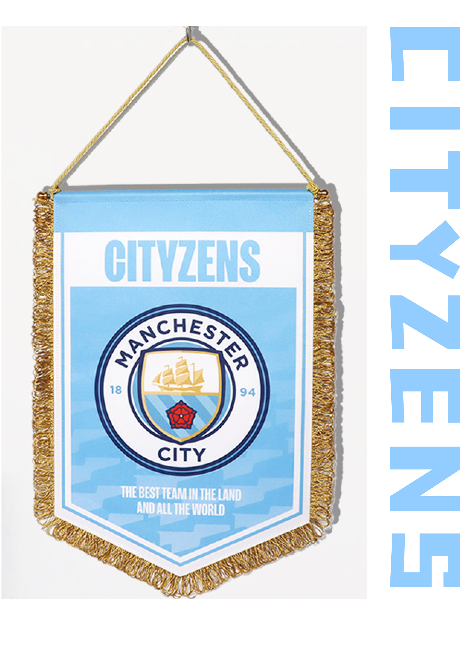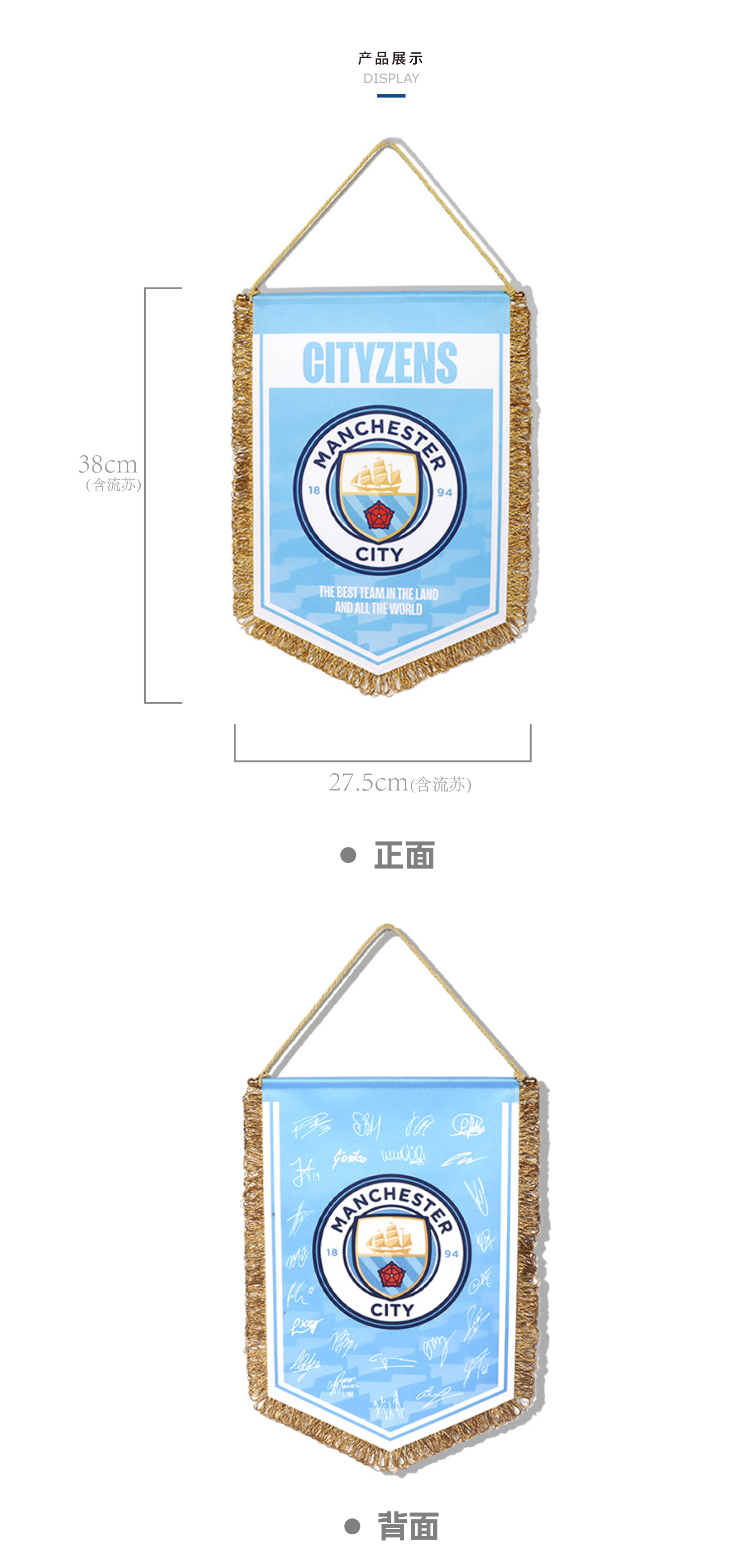 曼城俱乐部官方商品 | 蓝色球员印签队旗纪念珍藏挂旗足球迷周边