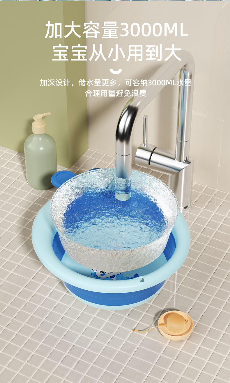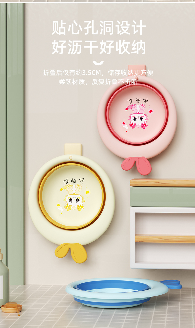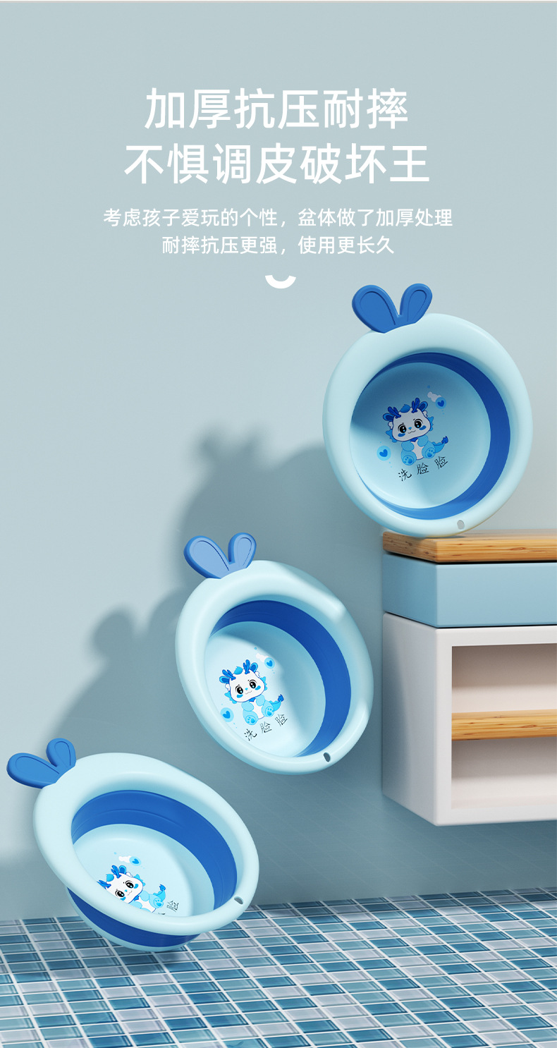 婴儿折叠脸盆3件套可悬挂洗脸脸洗脚脚洗屁屁儿童小盆子卡通可爱D-HESY