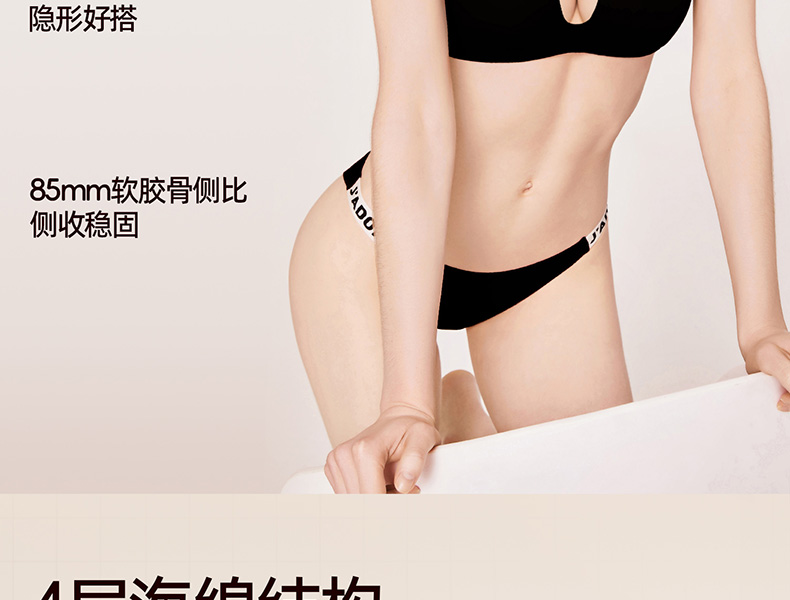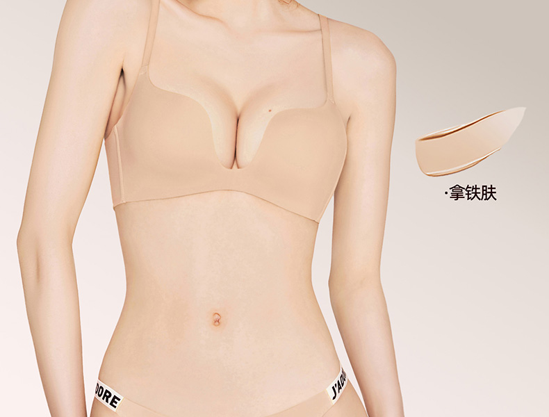 好奇蜜斯内衣女小胸聚拢上薄下厚光面无钢圈无痕防下垂文胸套装 麦蒂