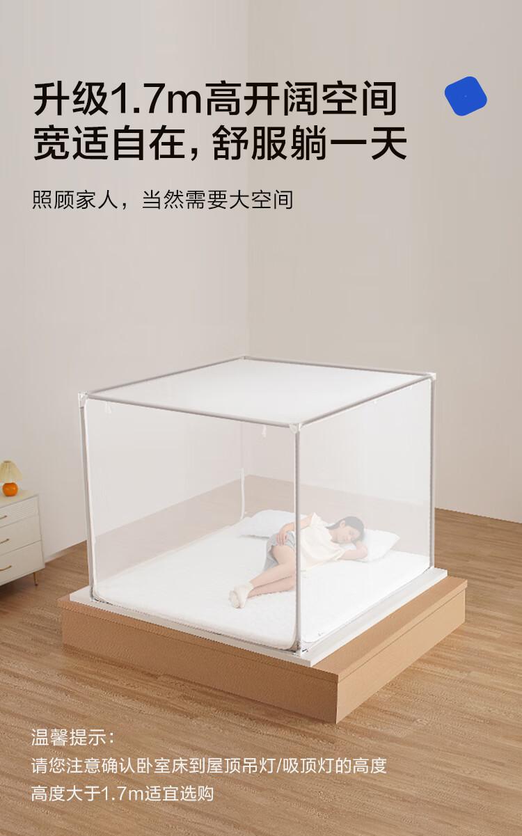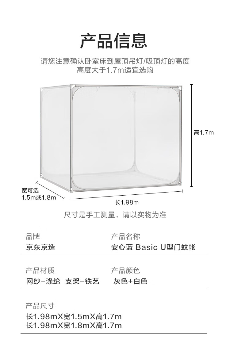京东京造安心蓝基础款蒙古包蚊帐母婴儿免安装折叠家用防摔蚊帐 1.8*2米床安心蓝基础款