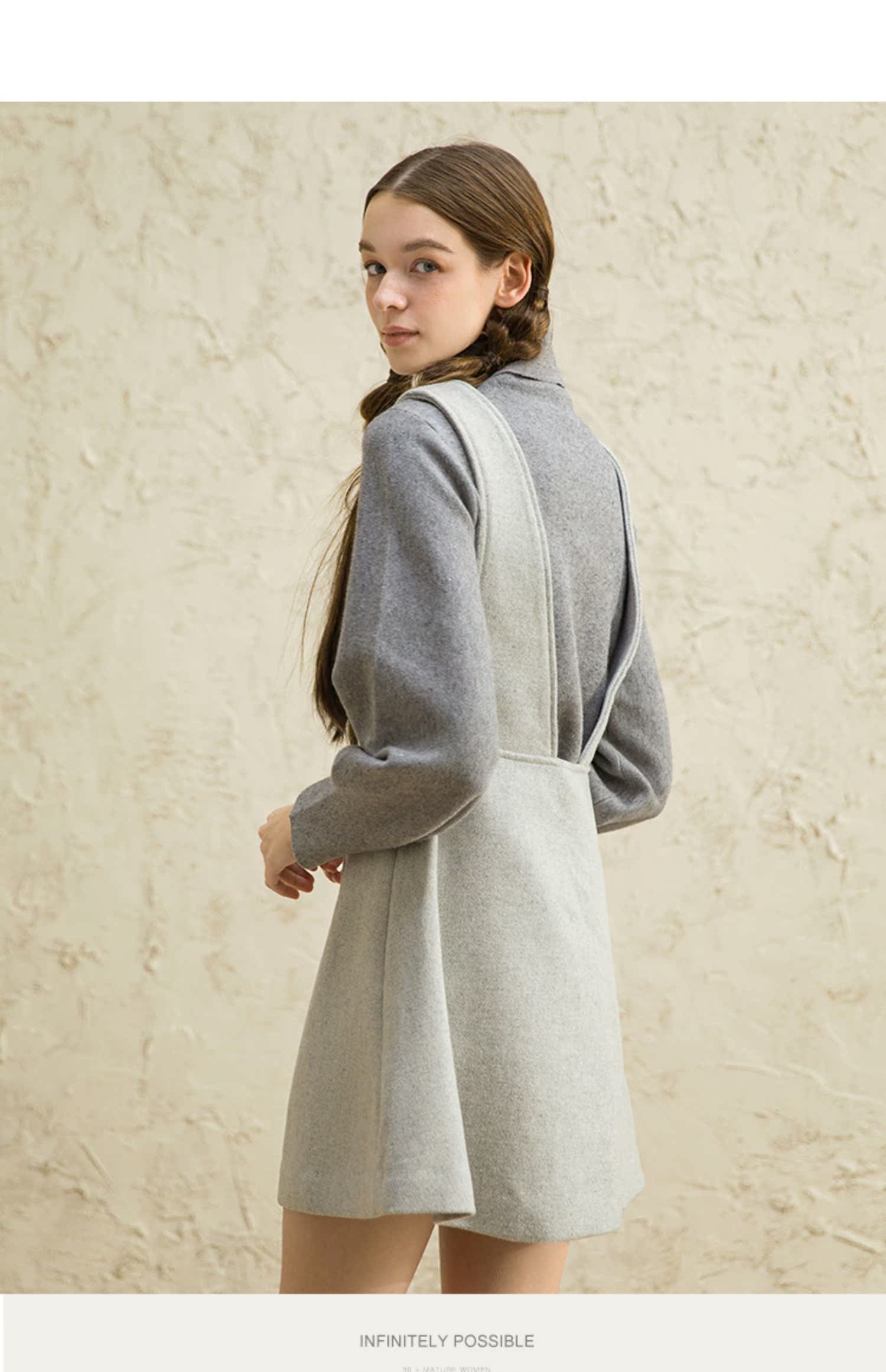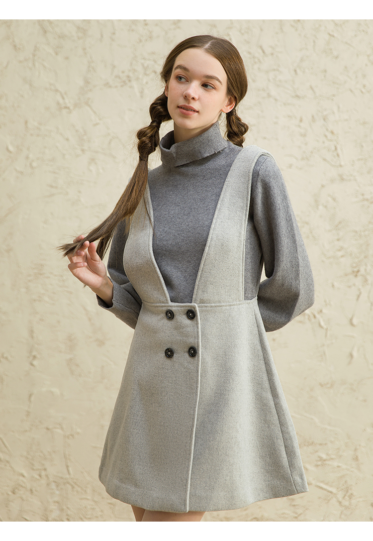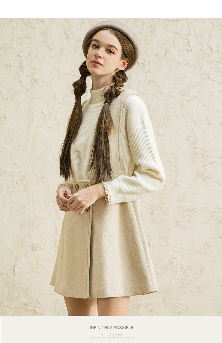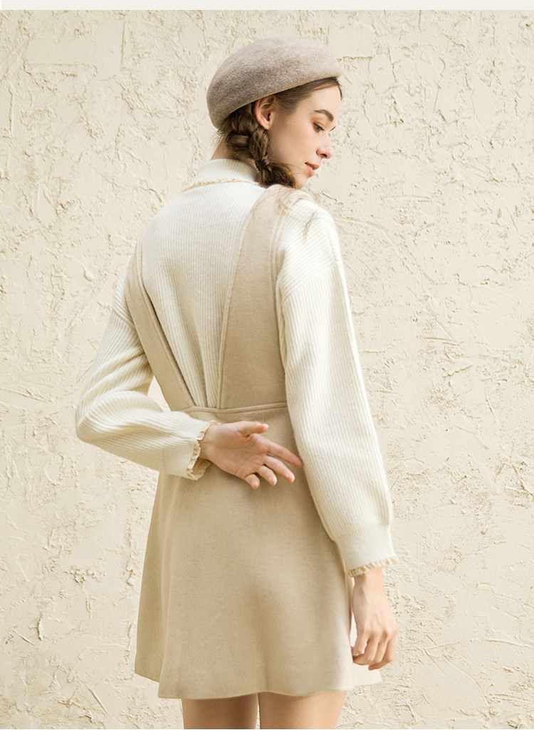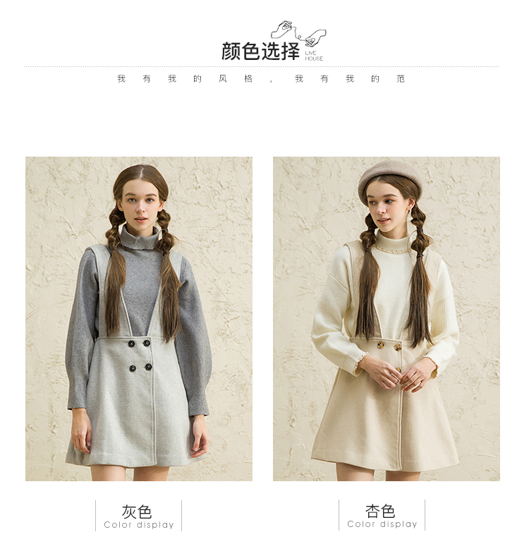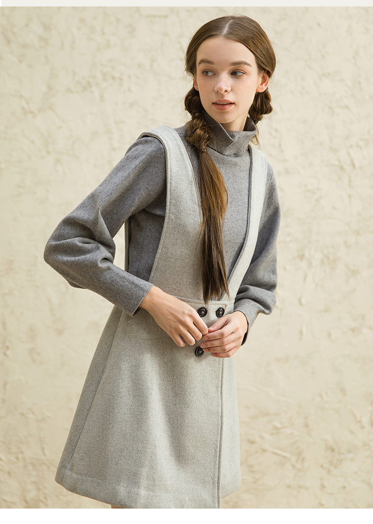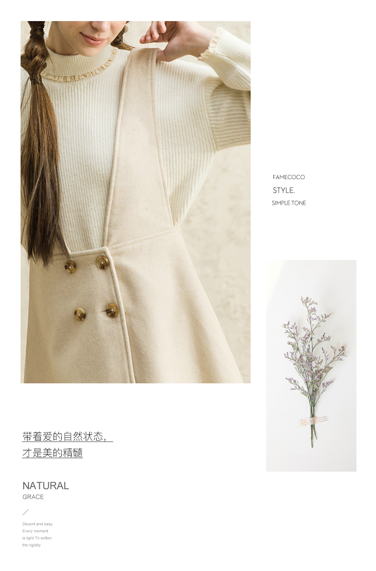 famecoco范可儿女中长款洋气气质吊带毛呢连衣裙F188FA016