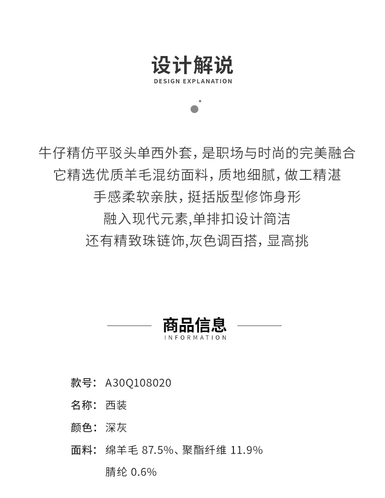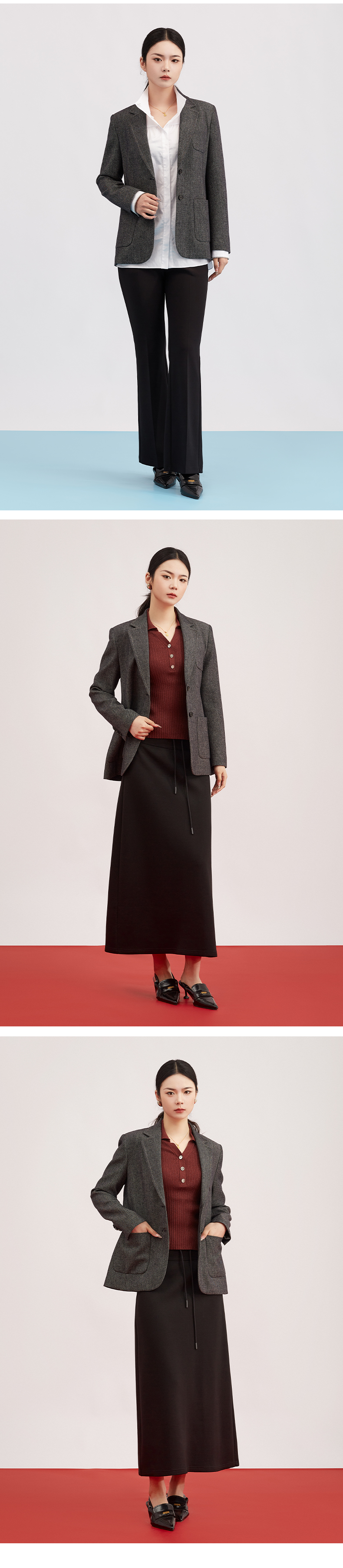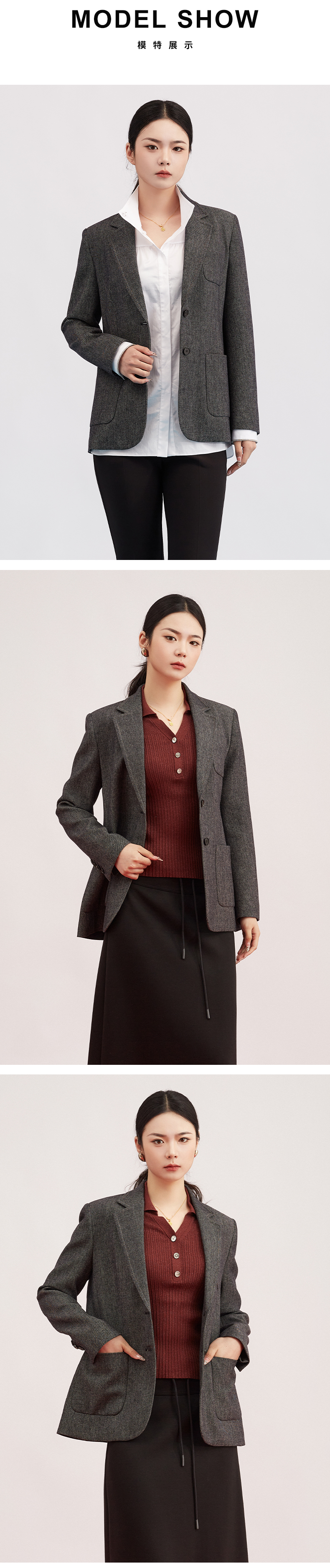 【商场同款】阿菁娜春季新款气质牛仔单西装灰色调百搭挺括穿出职场时尚感A30Q108020