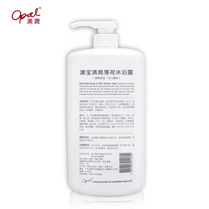 澳宝清爽薄荷沐浴露1.2L加送澳宝滋润顺滑洗发水100ml