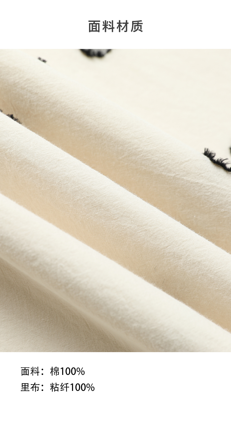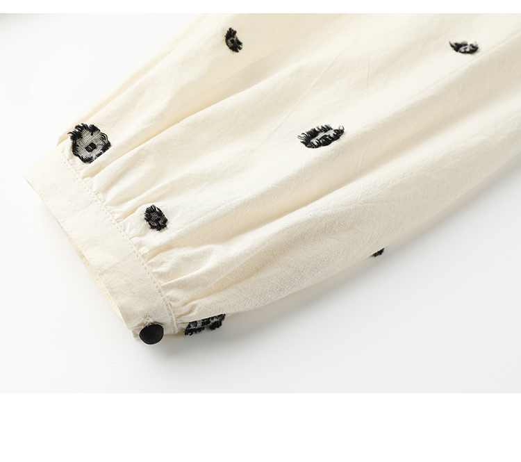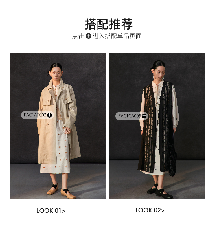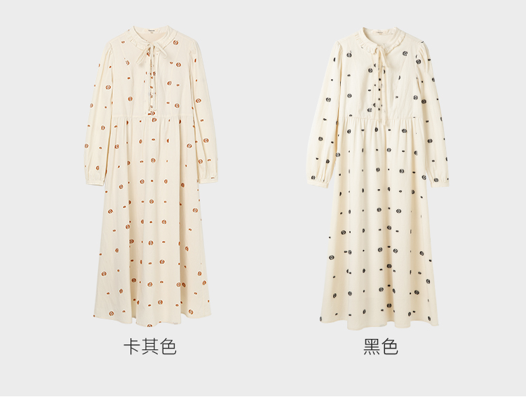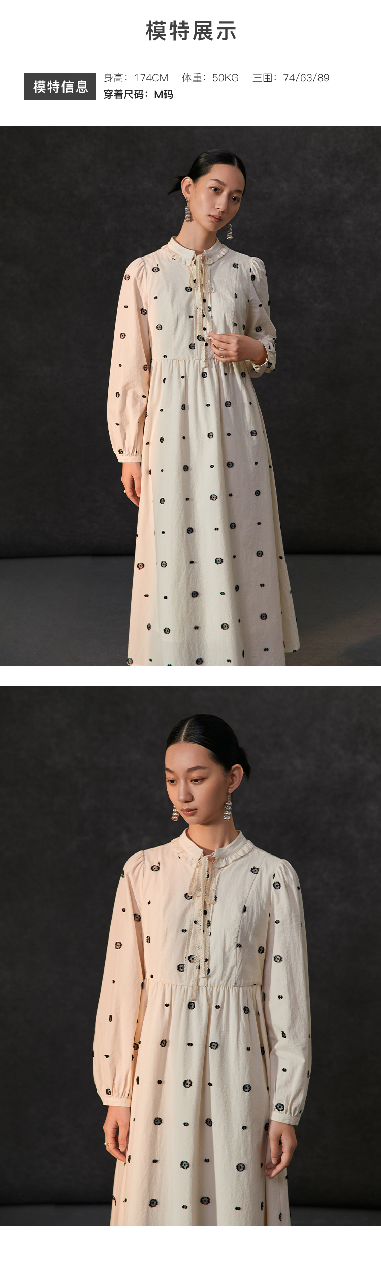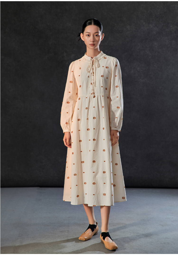 Famecoco复古浪漫绣花立领长裙女款长袖高腰连衣裙FAC1FA040