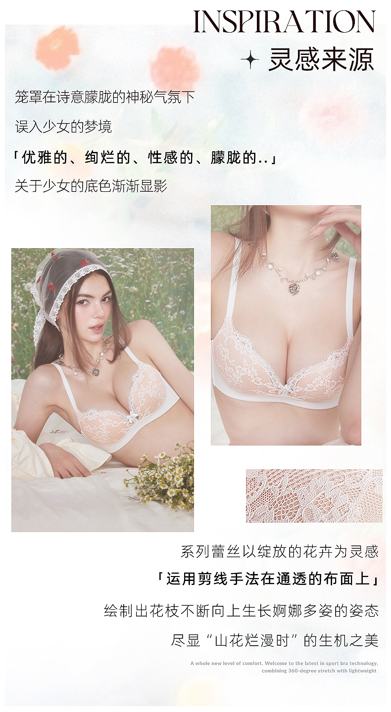 好奇蜜斯蕾丝内衣女小胸聚拢显大无钢圈防下垂性感法式文胸罩套装-依耶塔