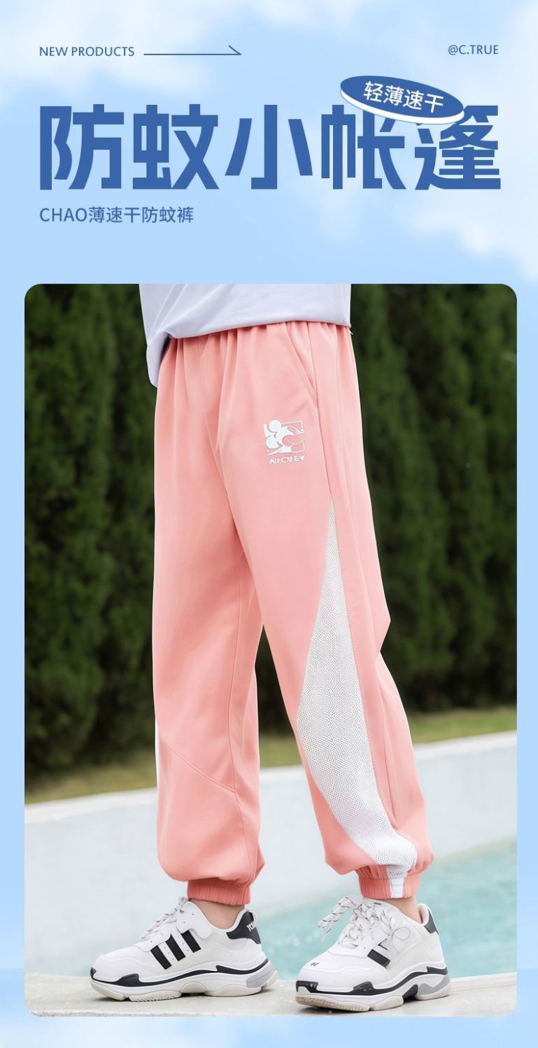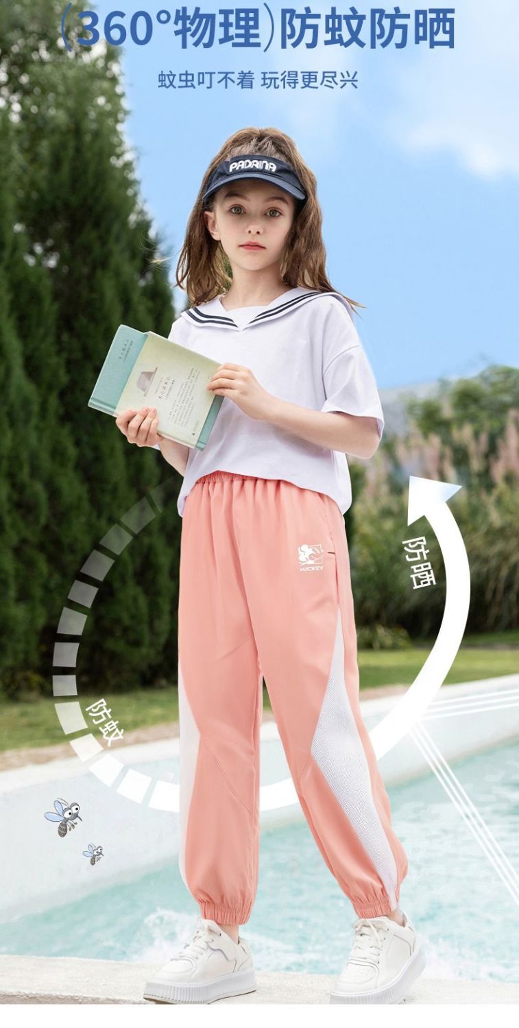 迪士尼女童防蚊裤夏季薄款速干裤子透气凉感防晒儿童夏装休闲裤潮
