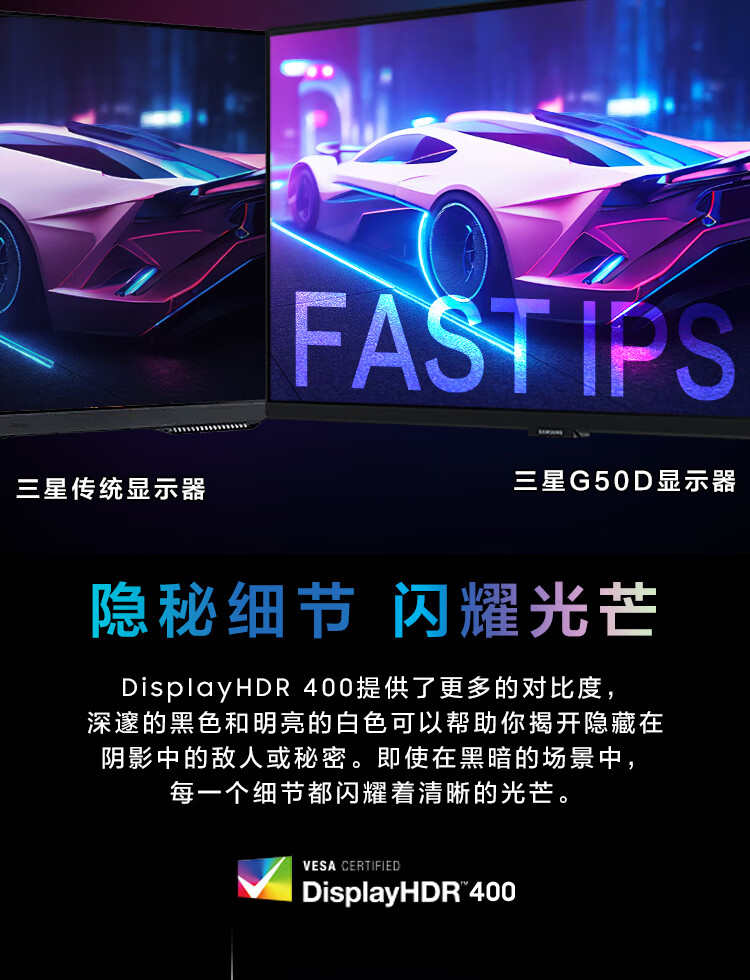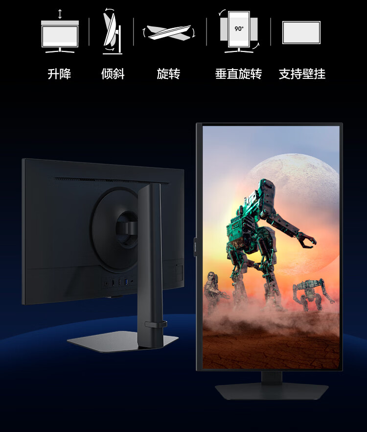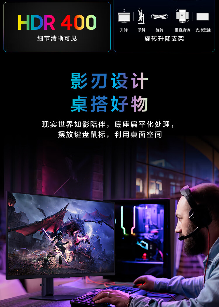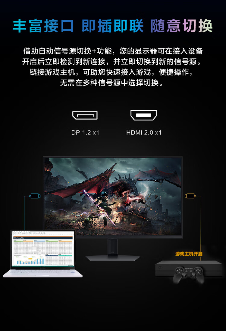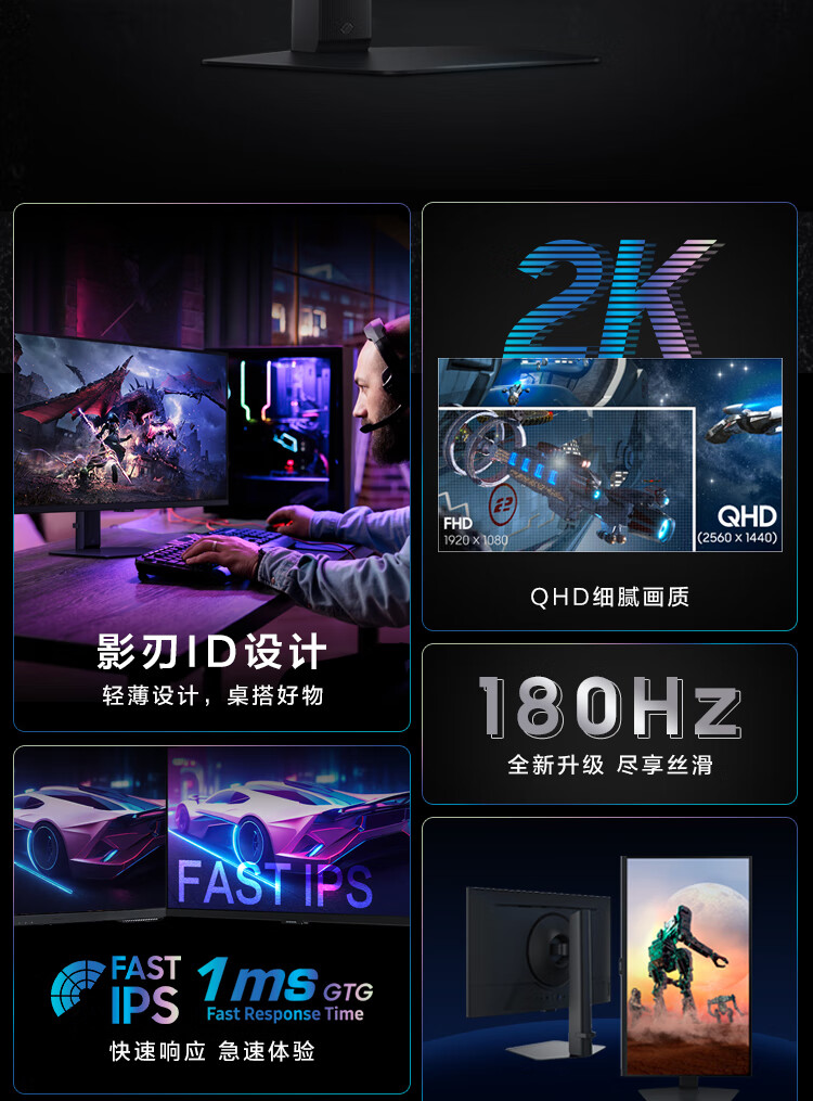 三星(SAMSUNG)27英寸 180Hz 2K 1ms(GTG) Fast IPS HDR400 护眼 旋转升降 玄龙骑士 电竞显示器 LS27DG502ECXXF