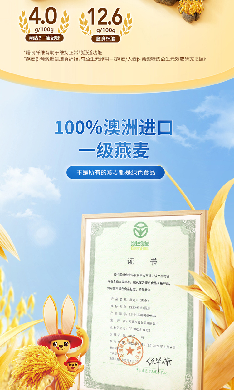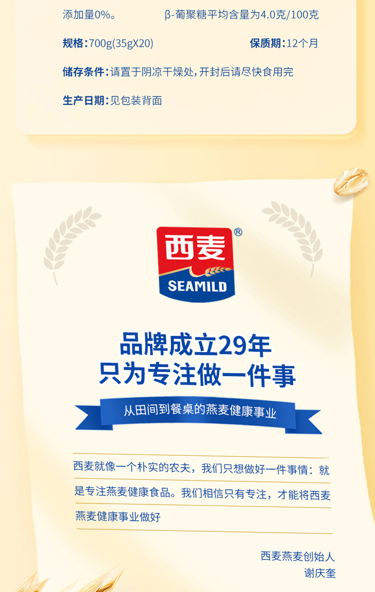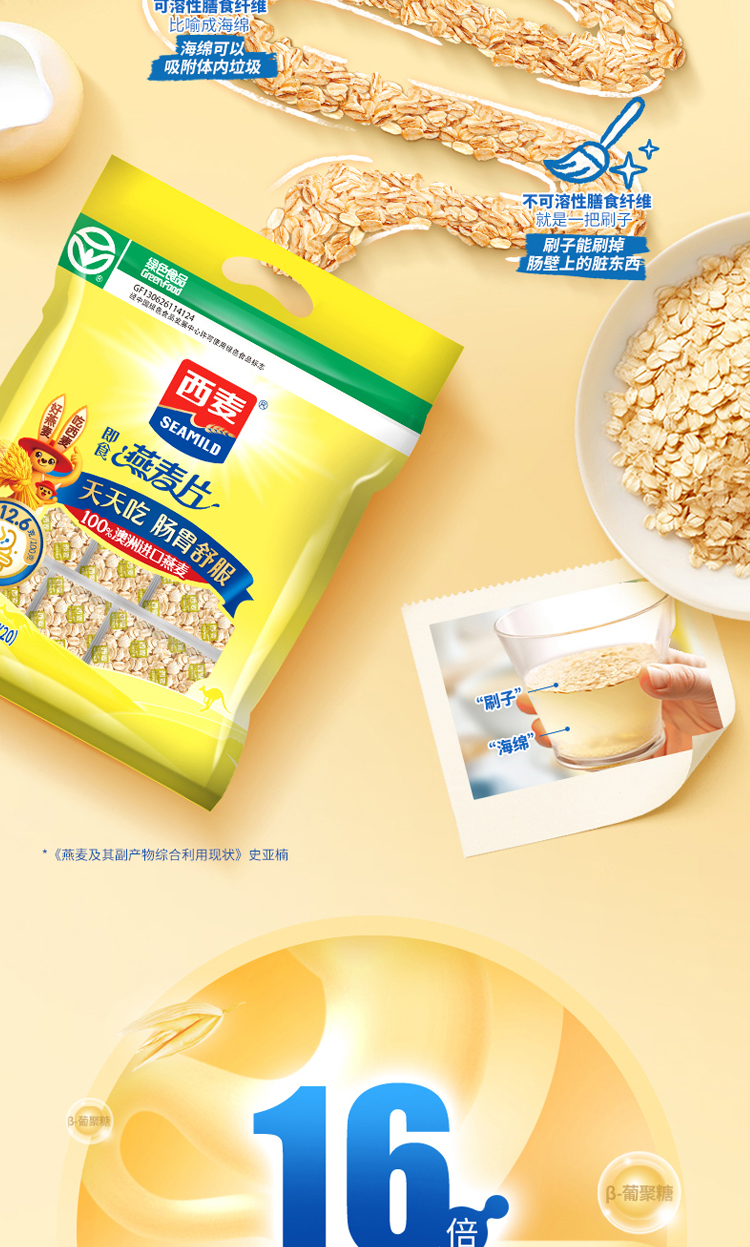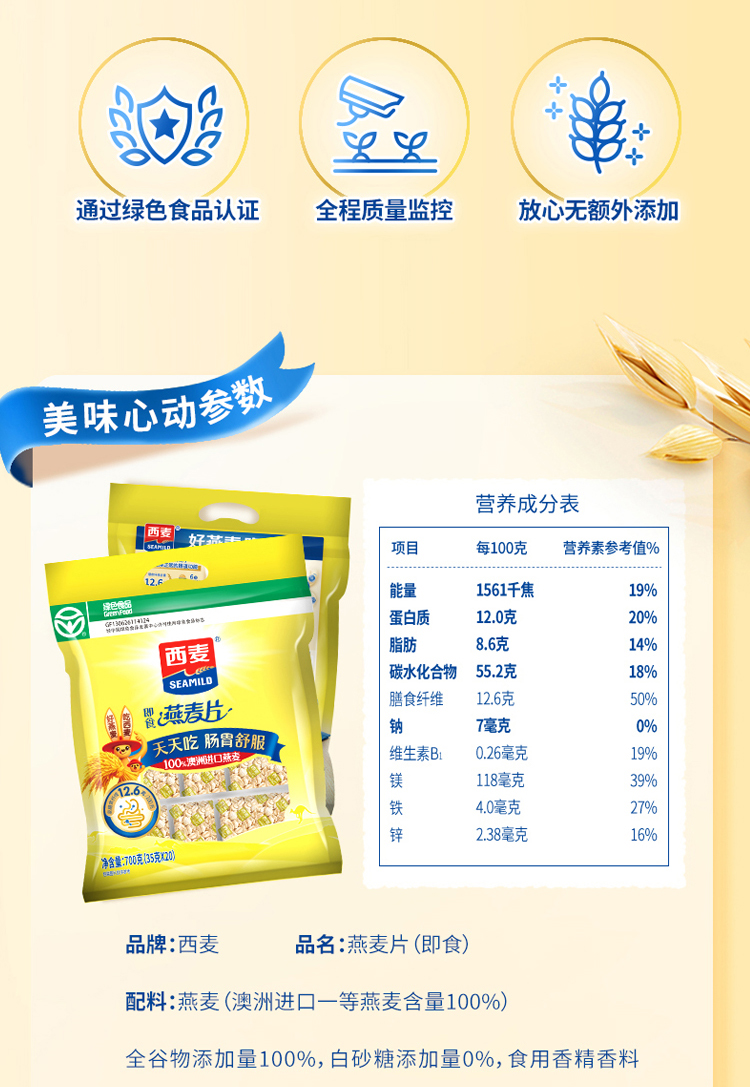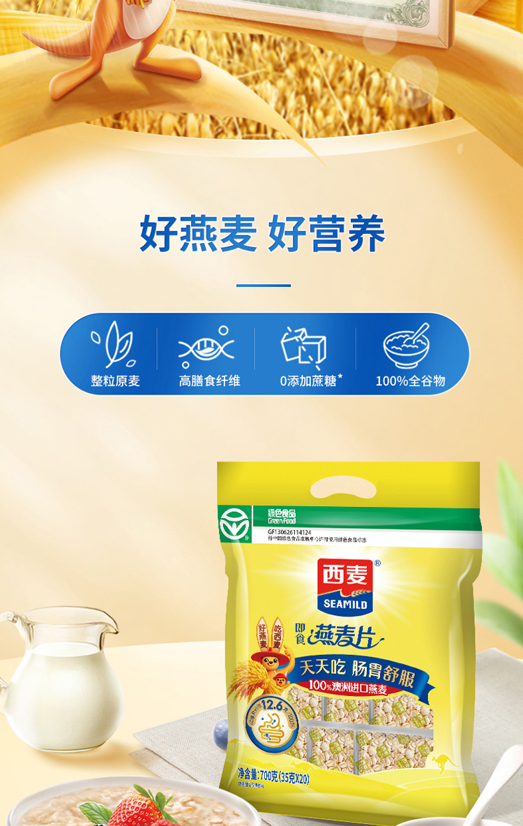 即食燕麦片700g内含35g*20包独立小包装绿色食品高膳食纤维0蔗糖早餐冲饮懒人代餐