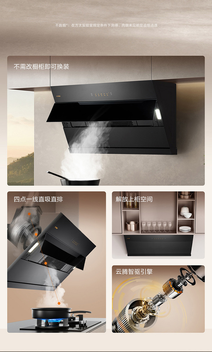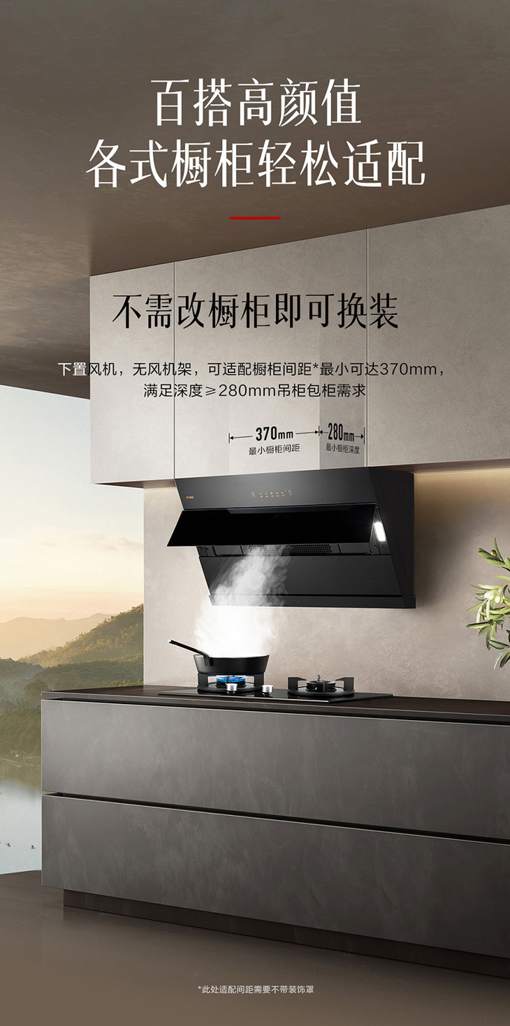 方太油烟机(11790) 百搭吊柜随心配,猛火爆炒不跑烟 CXW-258-02-JQC7T.i 百搭吊柜 近吸直排