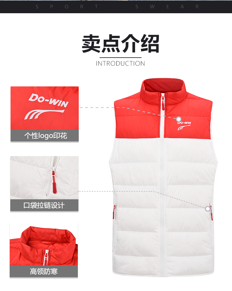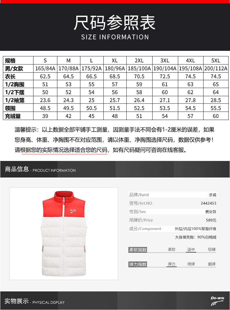 多威90%白鸭绒防寒保暖防水防钻绒羽绒马甲2442453