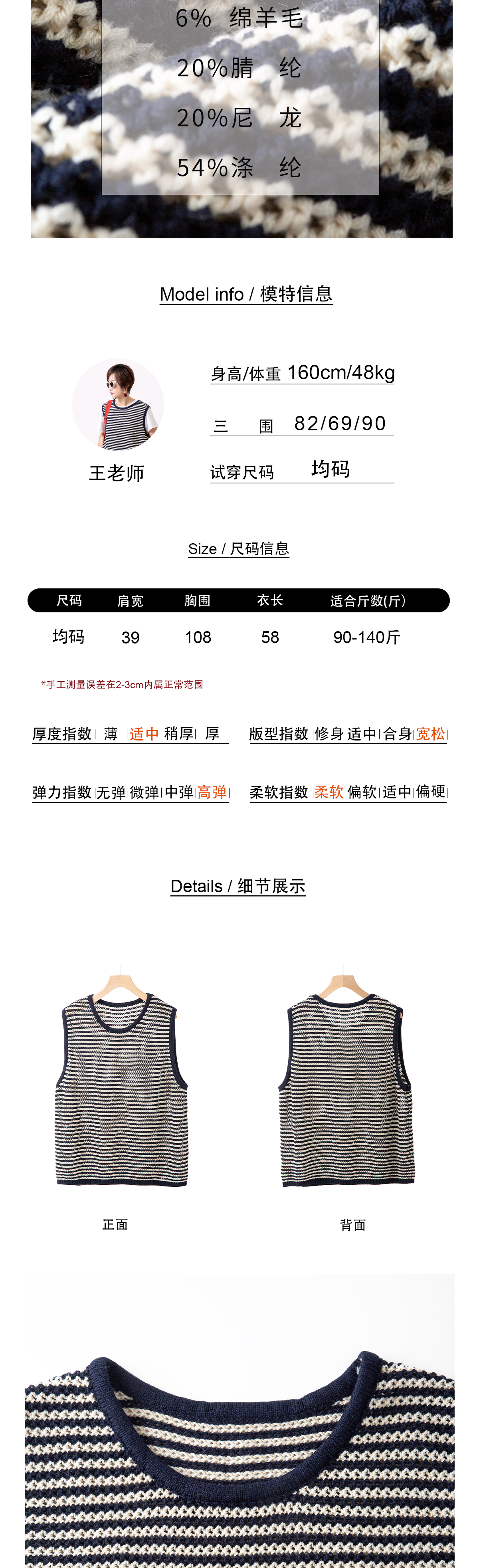 立体条纹背心