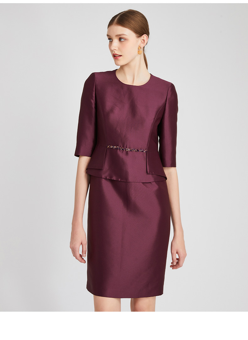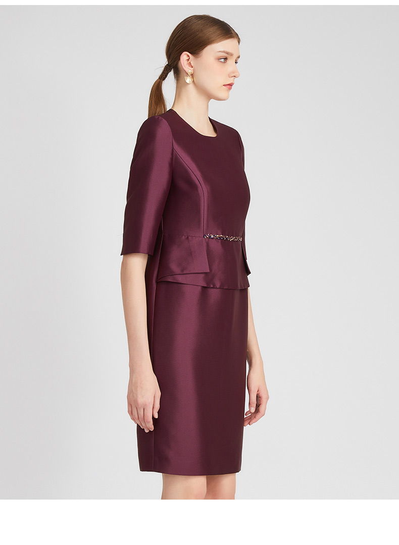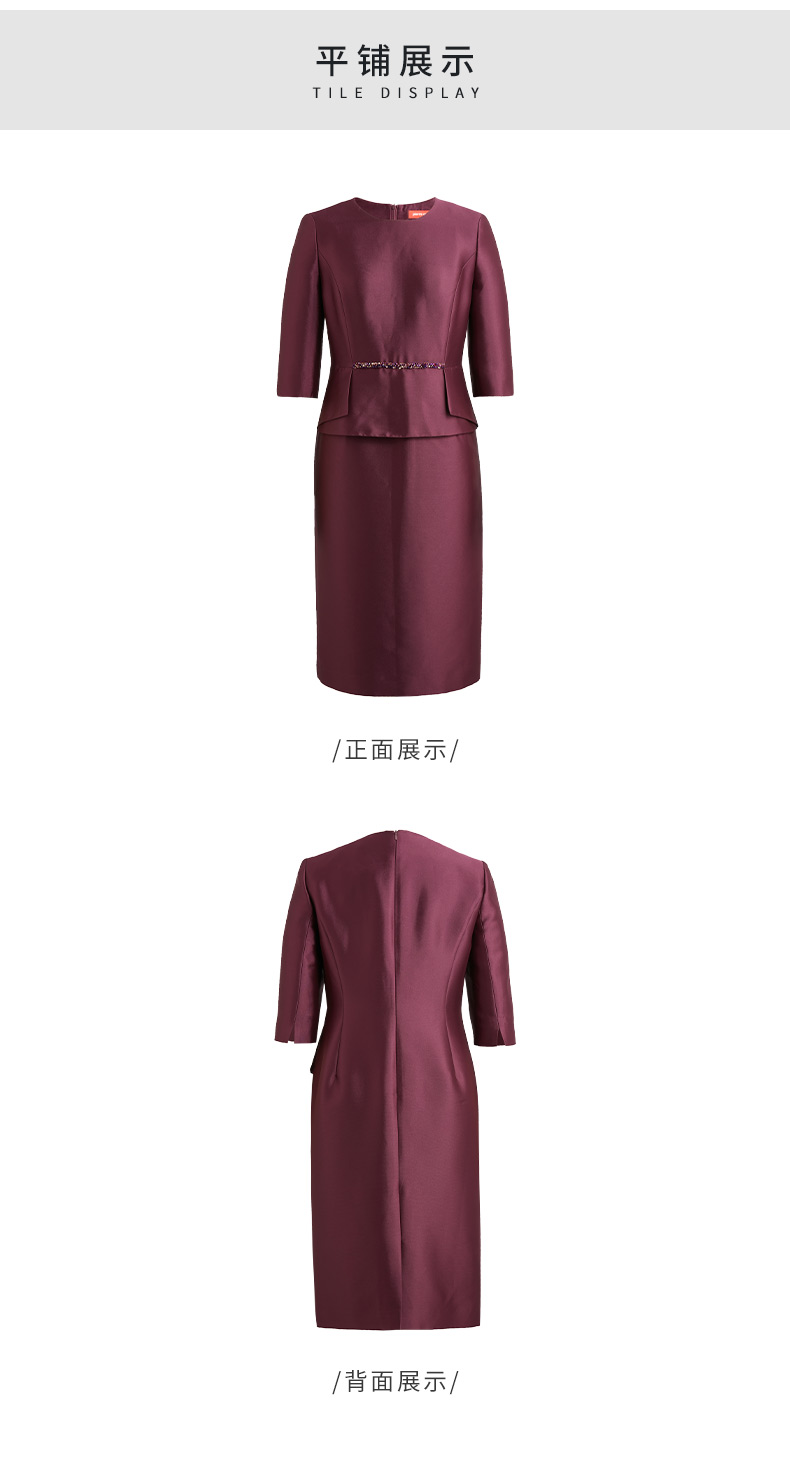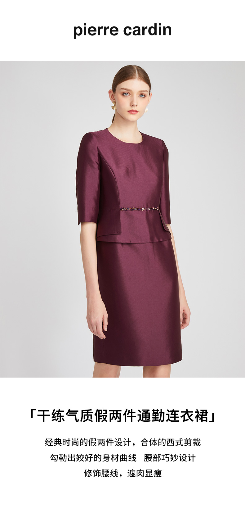 皮尔卡丹女装连衣裙紫色短袖醋酸假两件拼接宽松裙子P3108E2864Z0