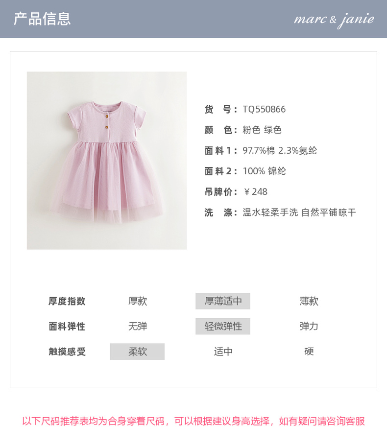马克珍妮女童薄款针织网纱连衣裙 宝宝公主裙夏装新款裙子550866