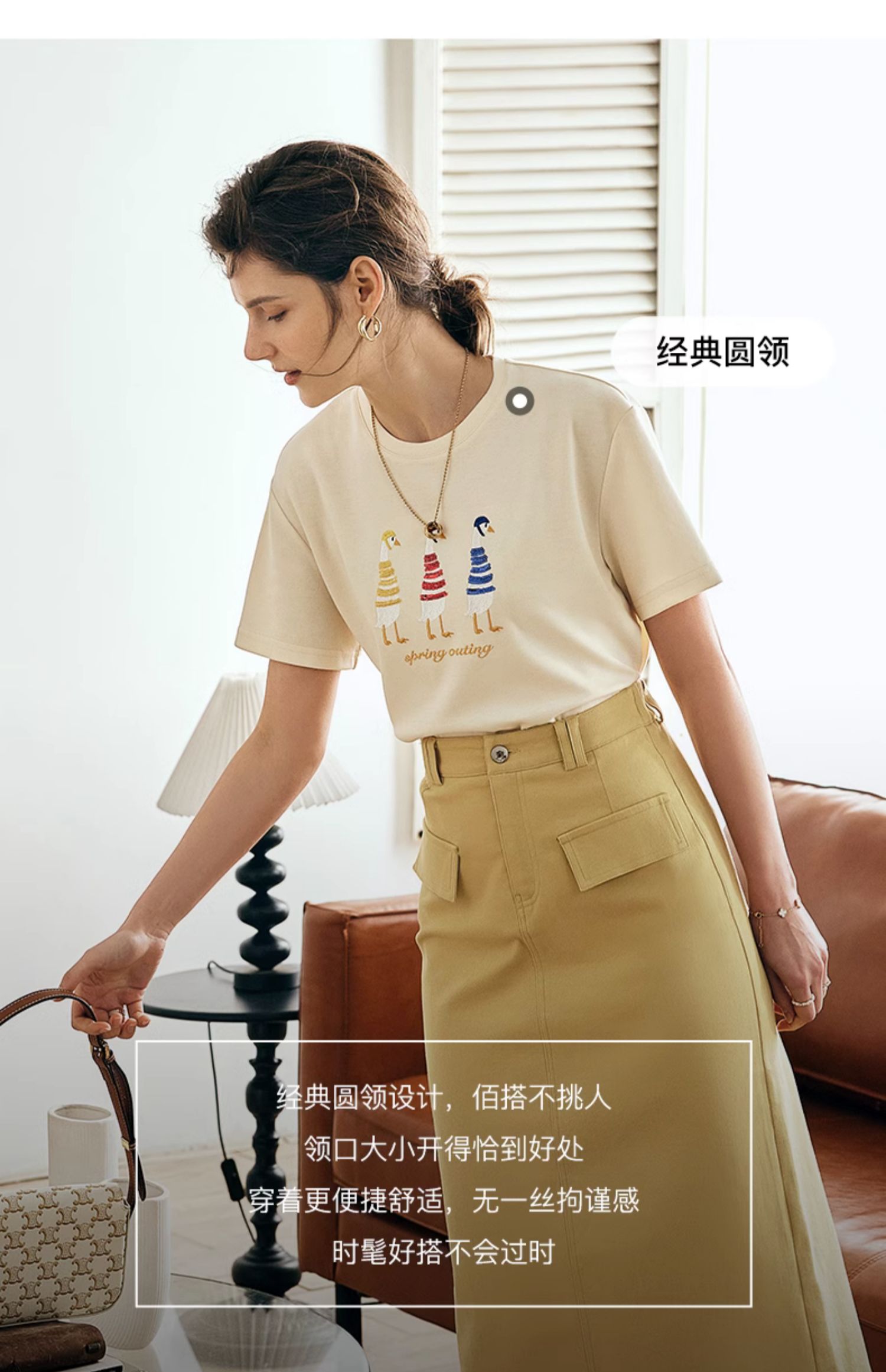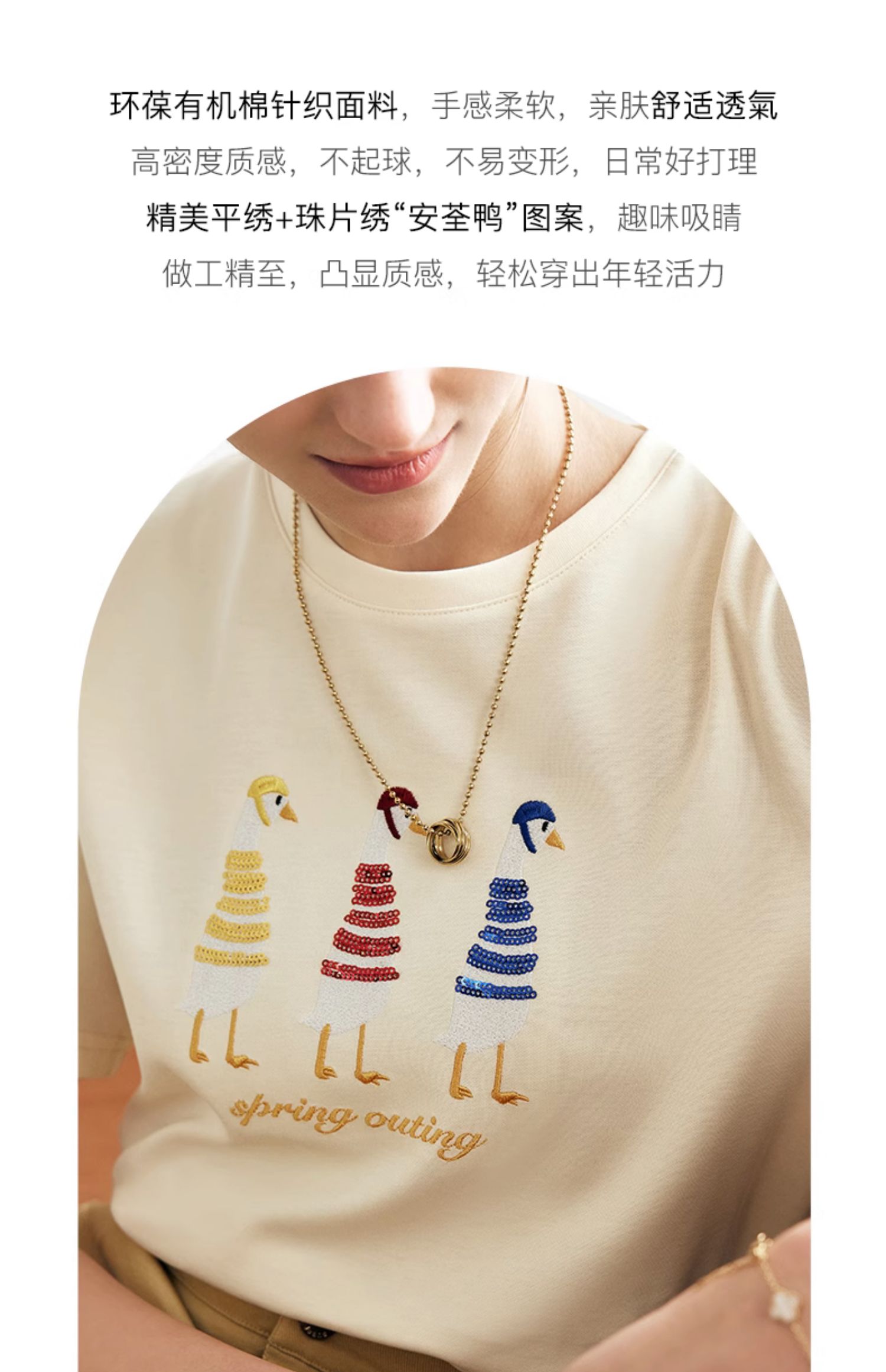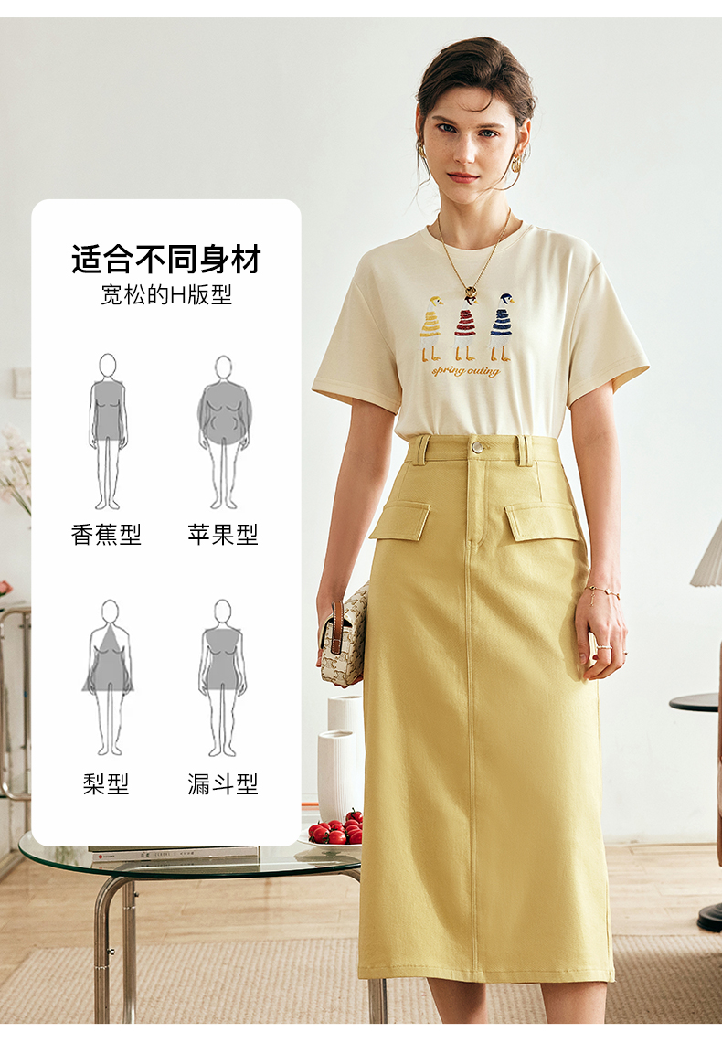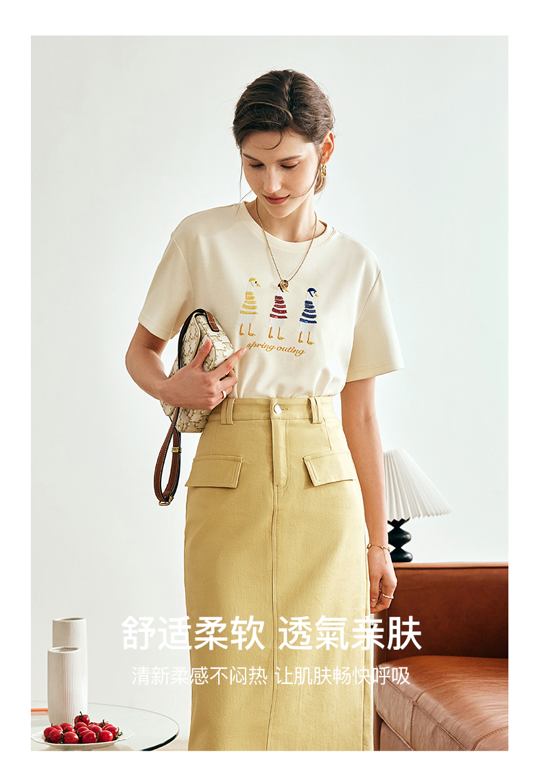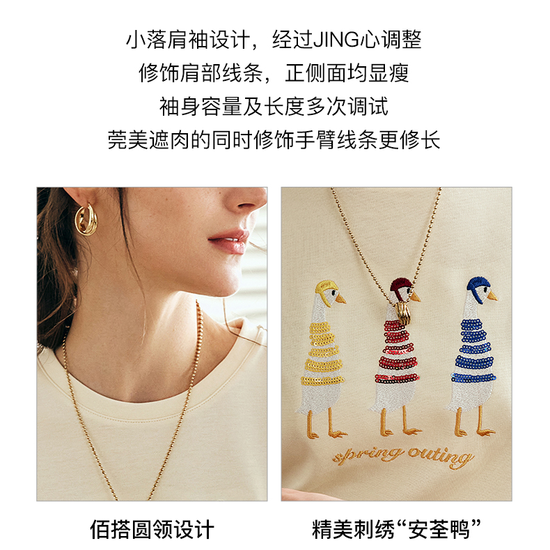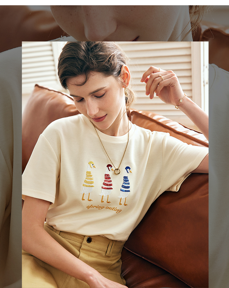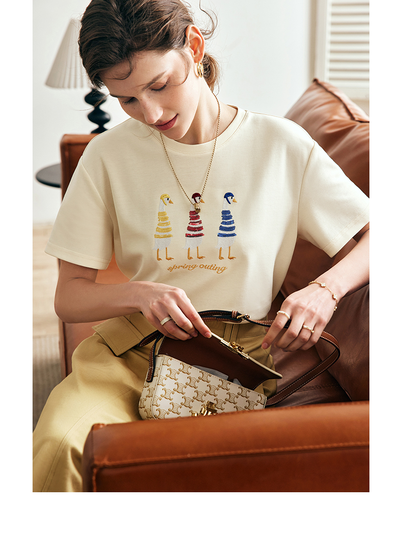 OLrain欧芮儿法式短袖T恤女夏季2024新款宽松时尚安全鸭刺绣上衣