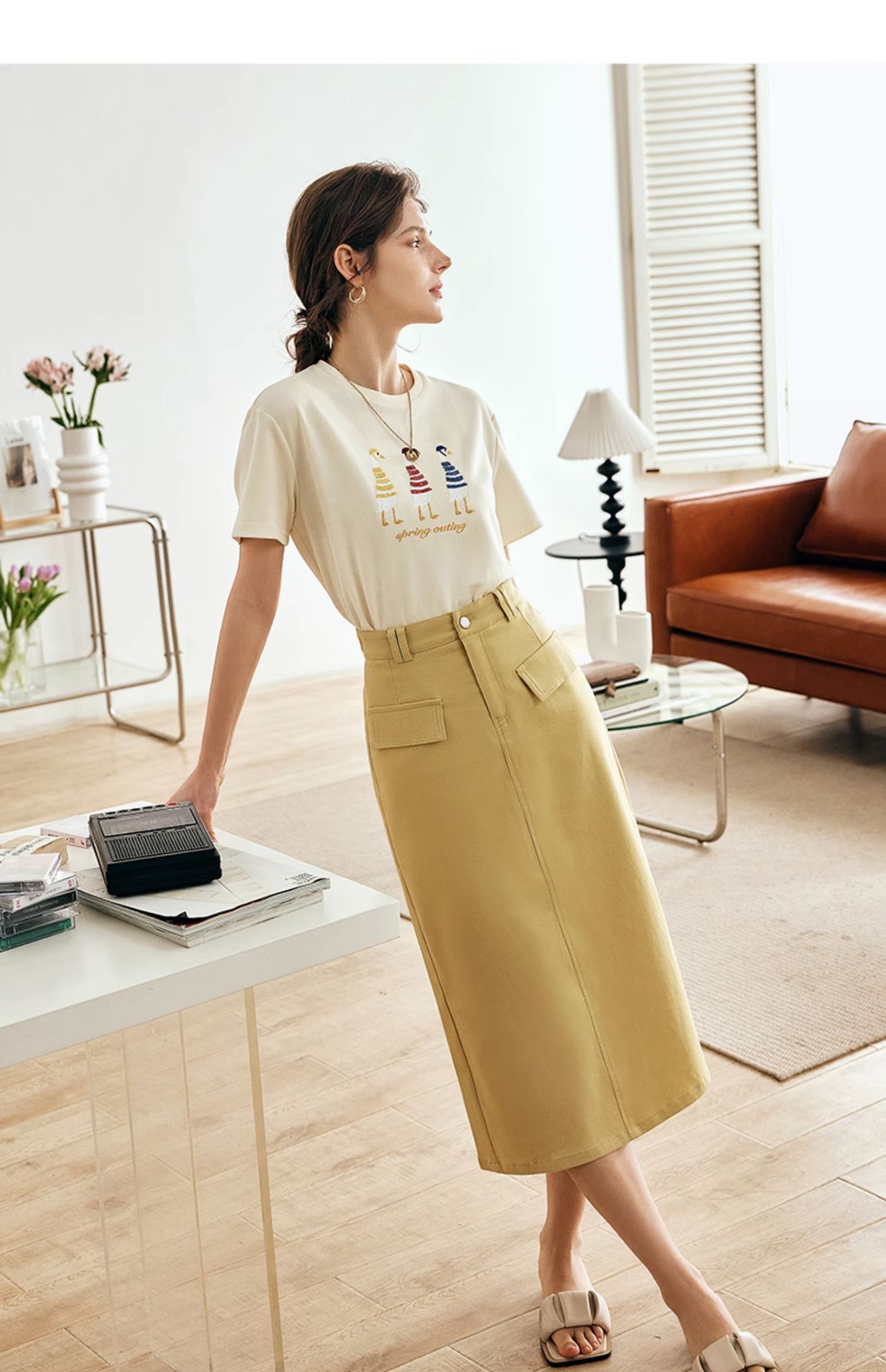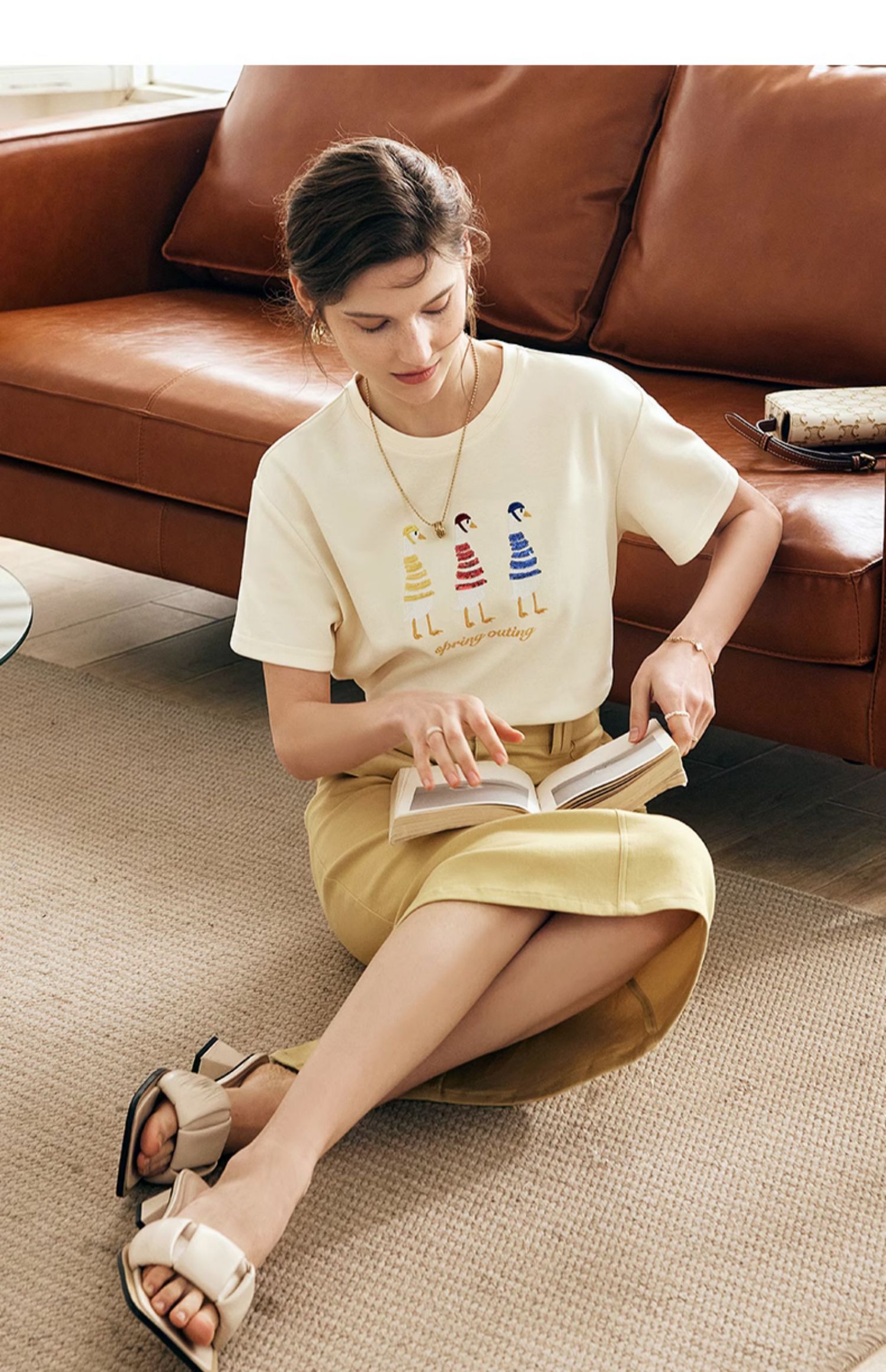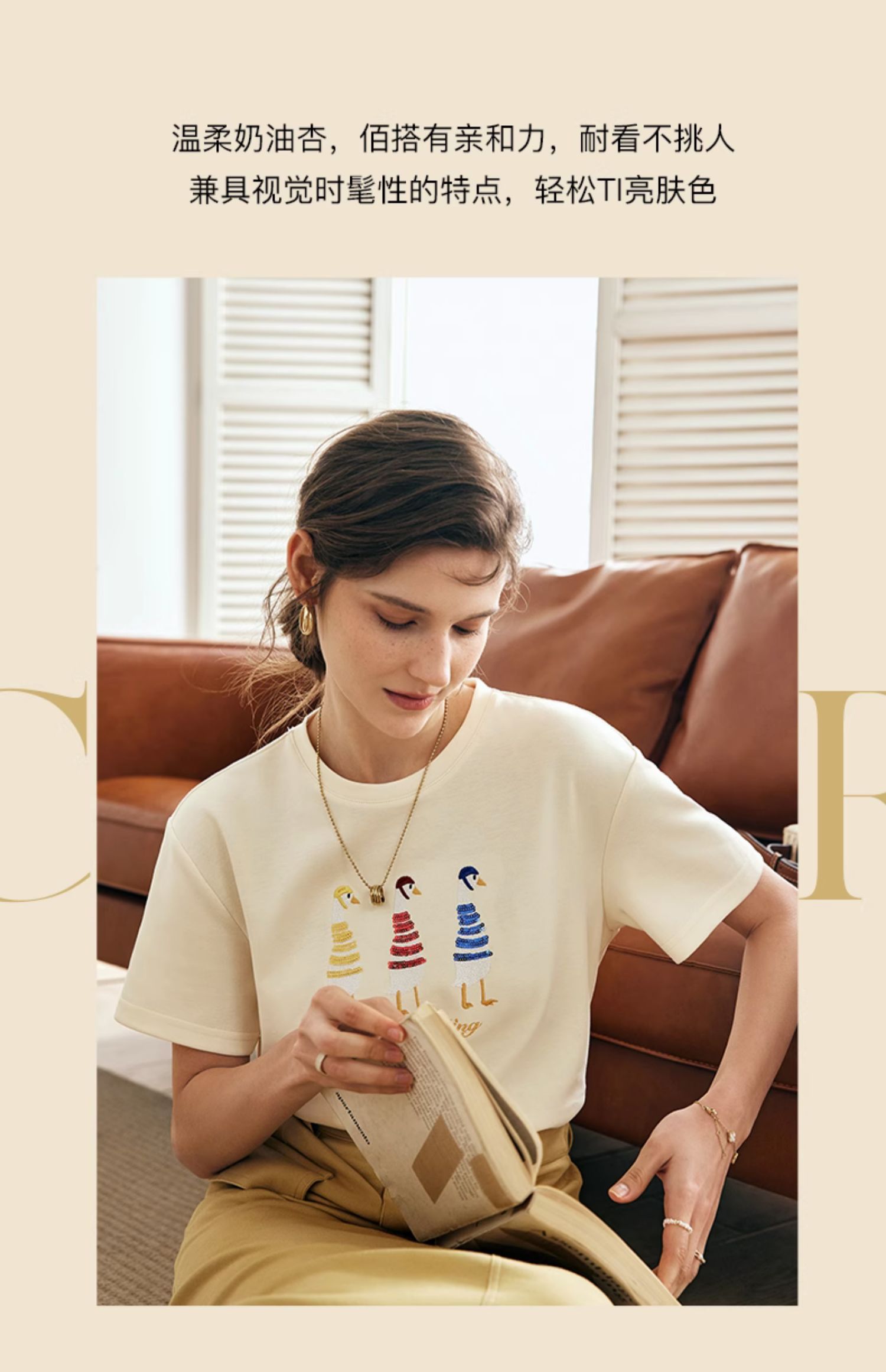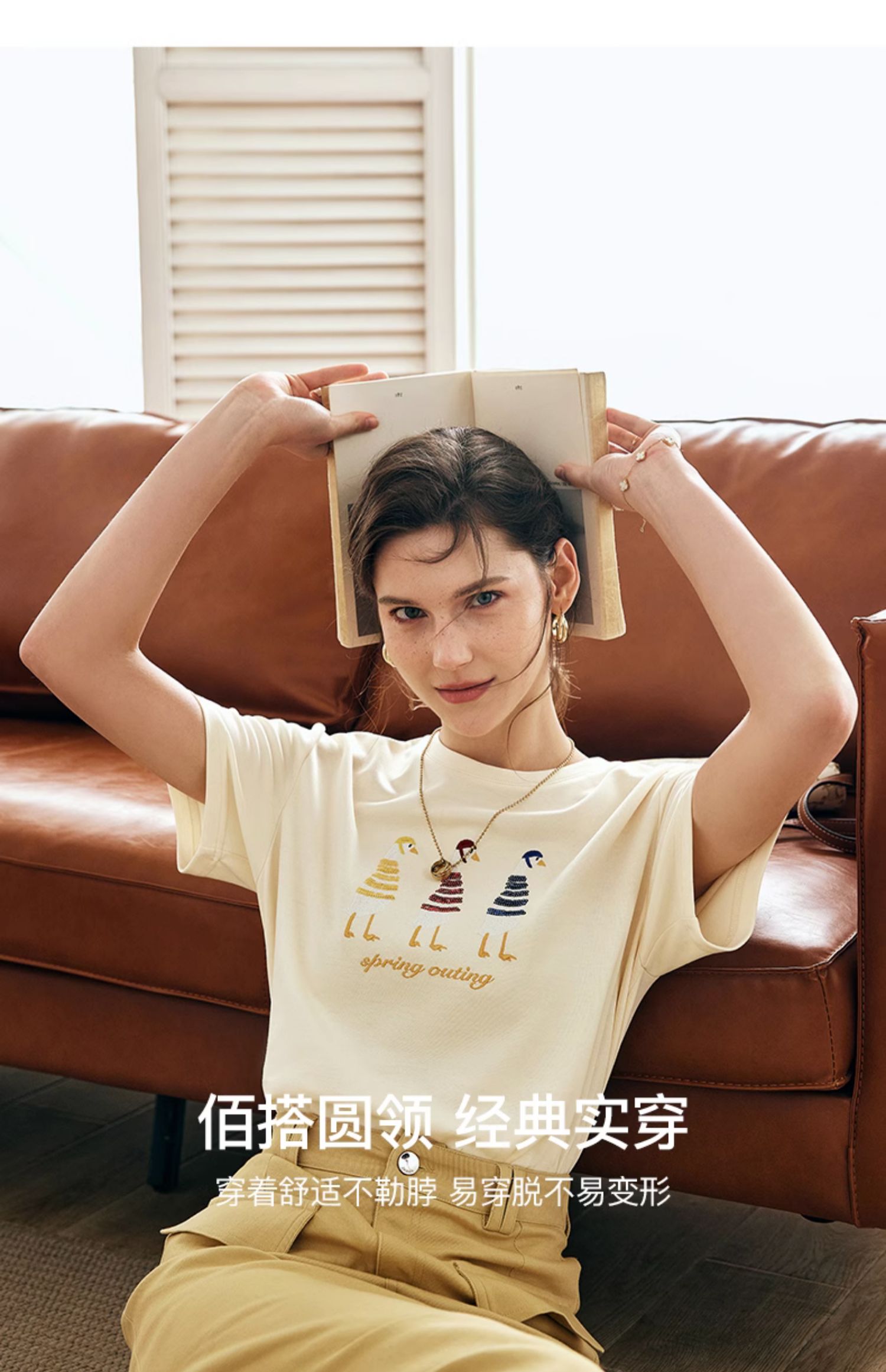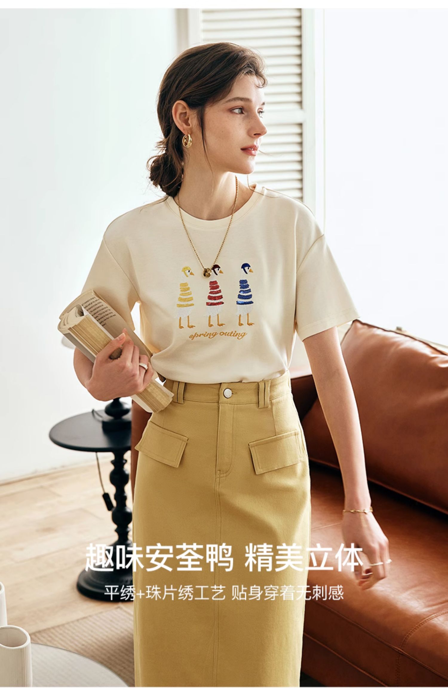 OLrain欧芮儿法式短袖T恤女夏季2024新款宽松时尚安全鸭刺绣上衣