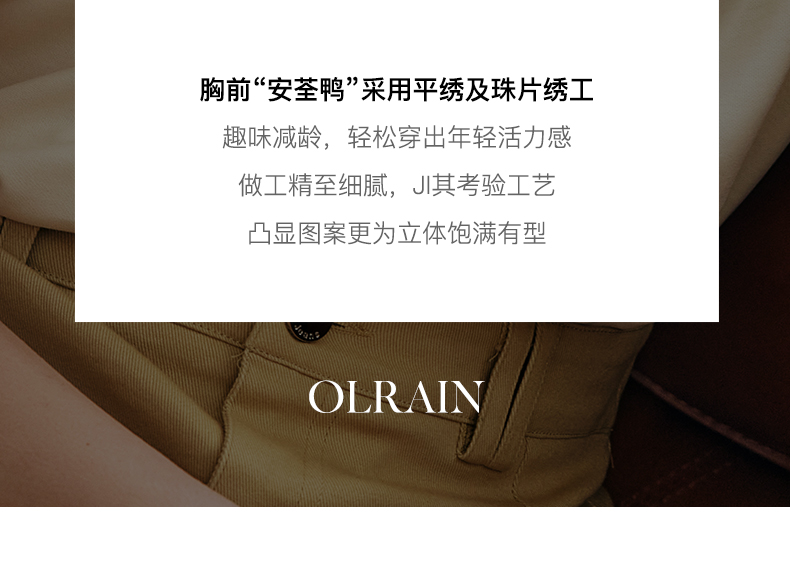 - “精致”是欧芮儿olrain品牌文化的核心,欧芮儿认为,精致的女人,不但要外在动人,更要内在迷人,内外兼修,有魅力、有气质、有内涵,自信而不自傲,优雅而不矫揉,自有万种风情而不轻浮,更不故作矜持。