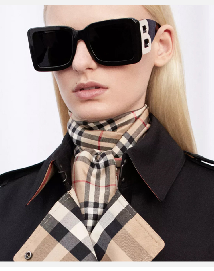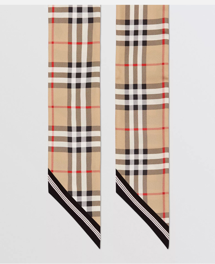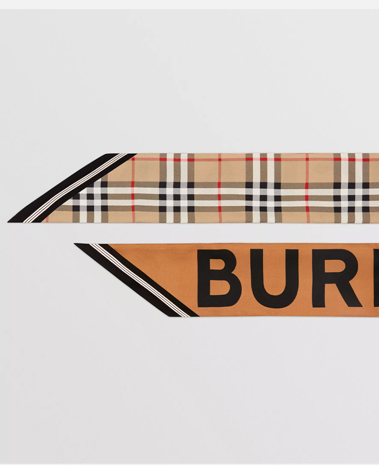 BURBERRY 巴宝莉 女士Vintage 格纹和徽标印花真丝紧身围巾 8028950 A7026