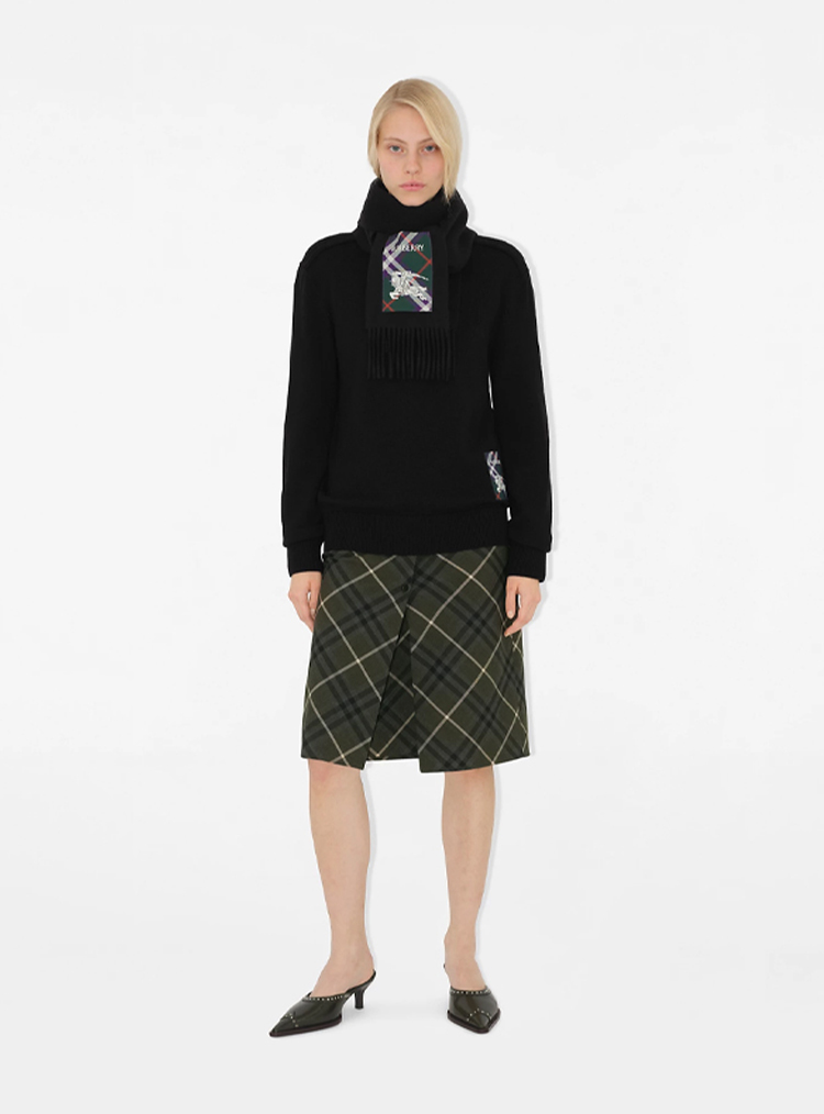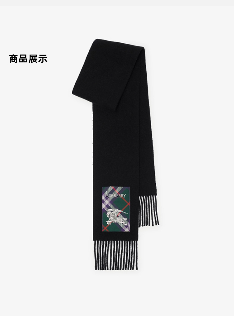 BURBERRY 巴宝莉 女士马术骑士徽标格纹标签羊绒围巾 黑色 8103997 B4935