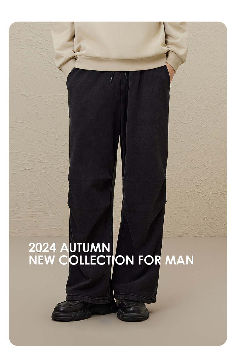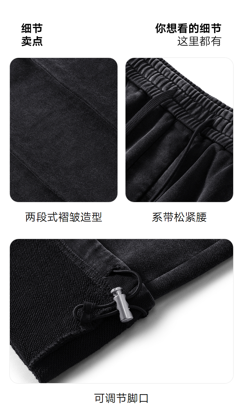 GX男装 2024秋季热卖 宽松直筒休闲长裤复古黑色抽绳伞兵裤#G24D024179