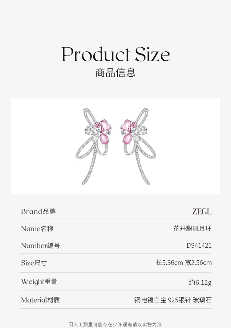 ZEGL设计师花知夏系列蝴蝶结花朵耳环女小众夸张耳钉甜美银针耳饰