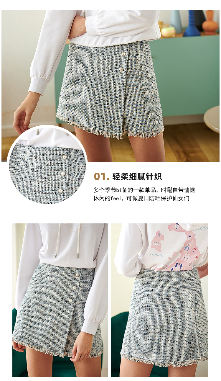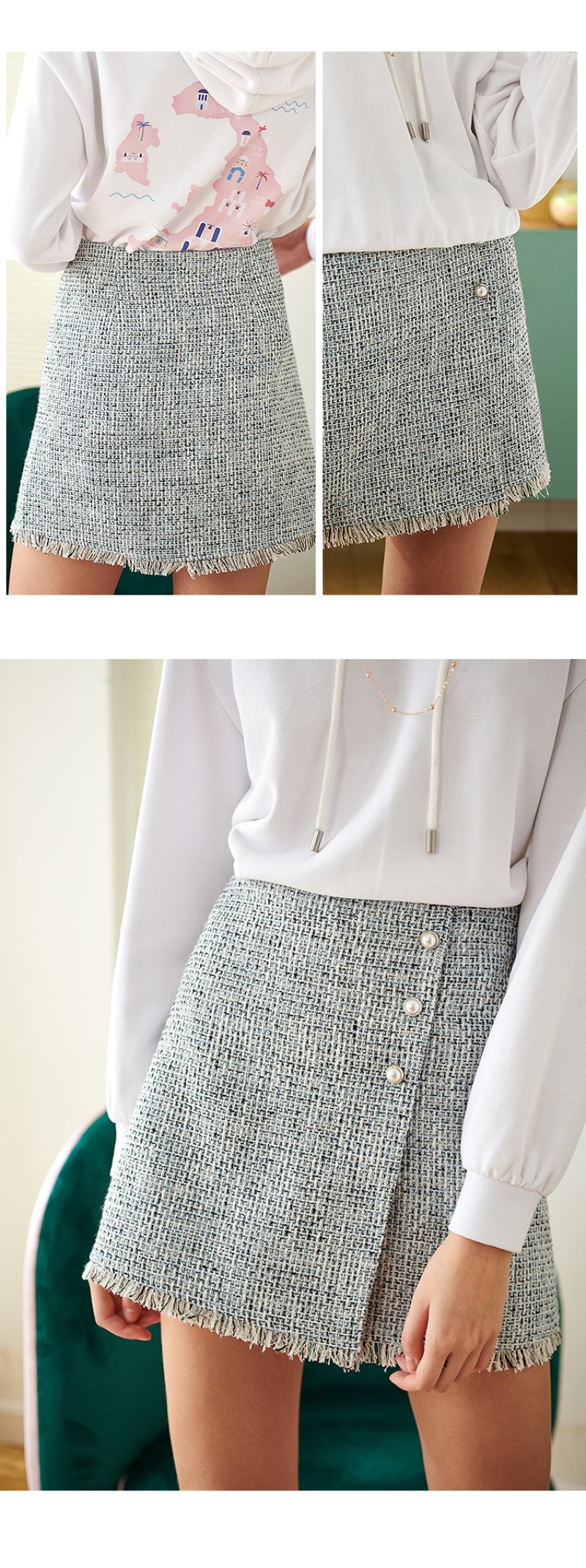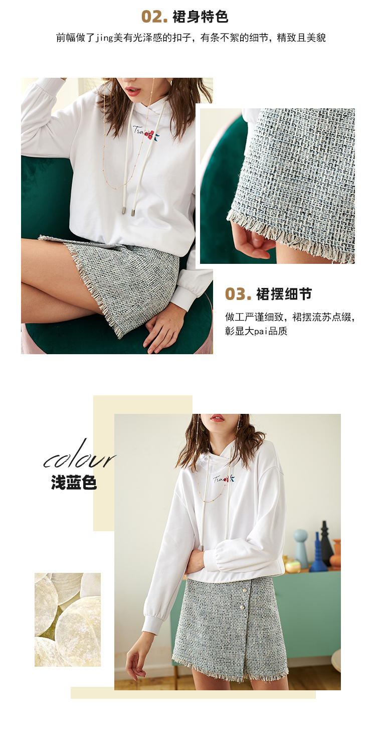 欧芮儿春新款高腰显瘦半身裙女小香风短裙流苏不规则包臀裙