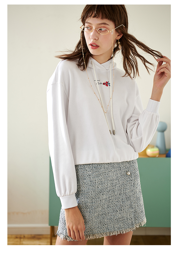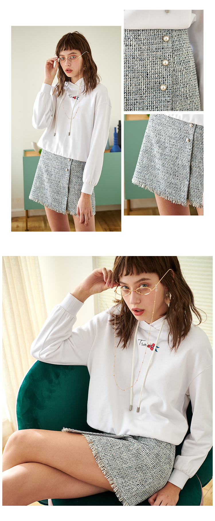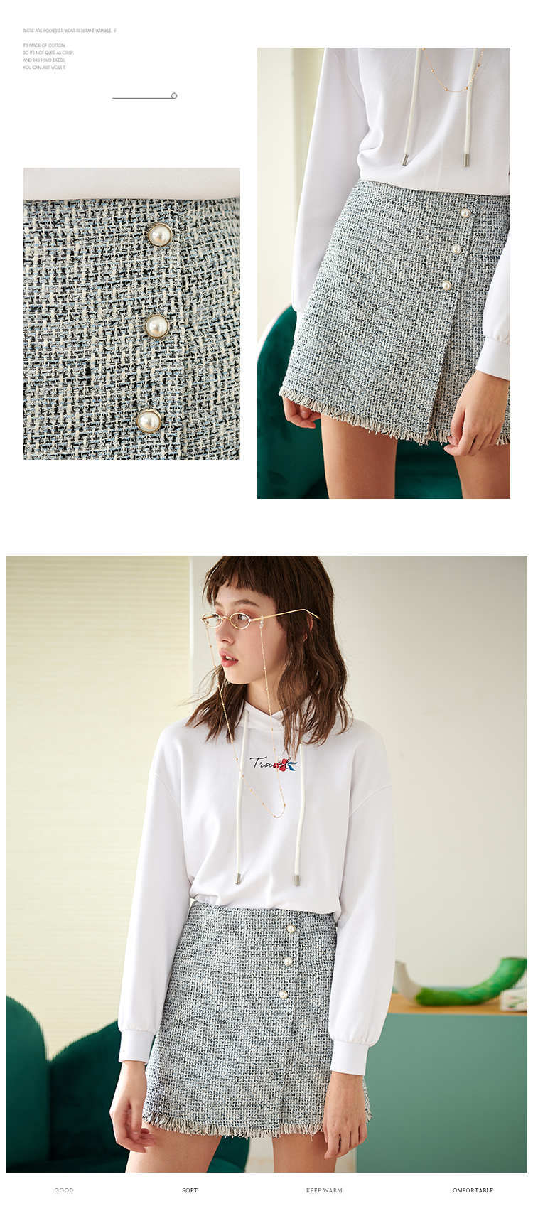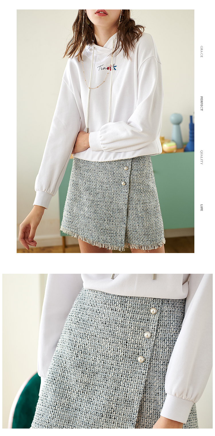 欧芮儿春新款高腰显瘦半身裙女小香风短裙流苏不规则包臀裙