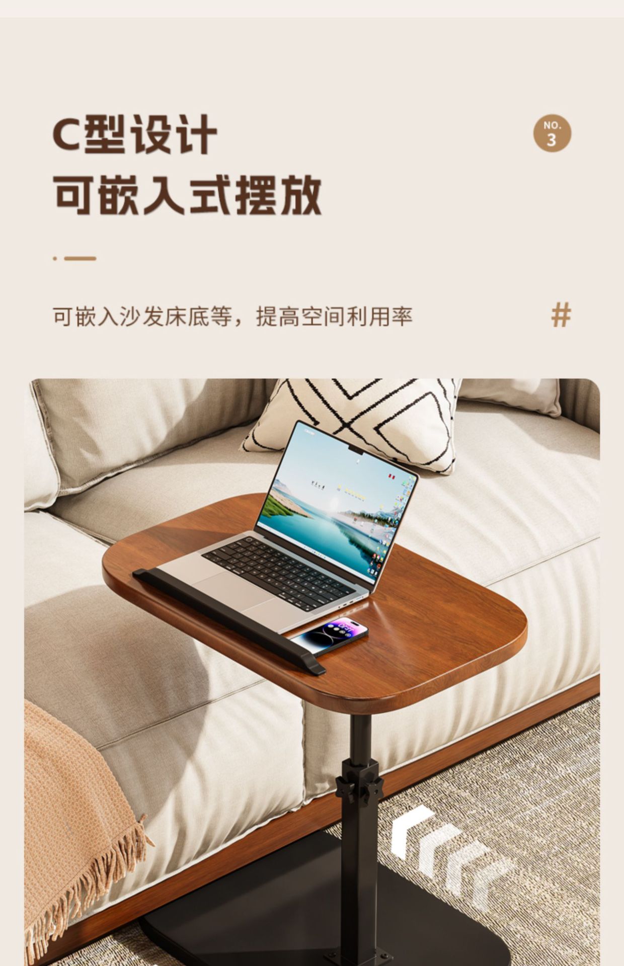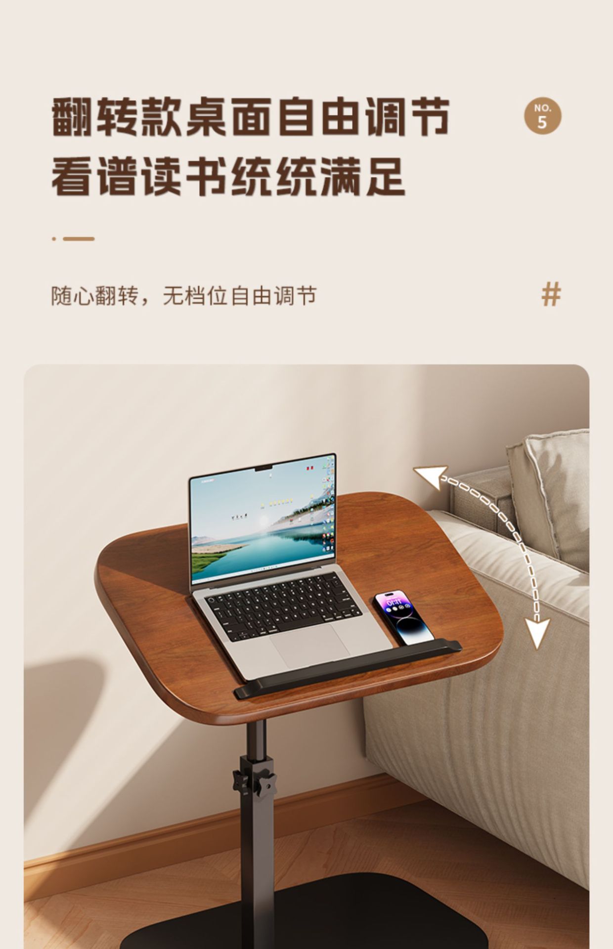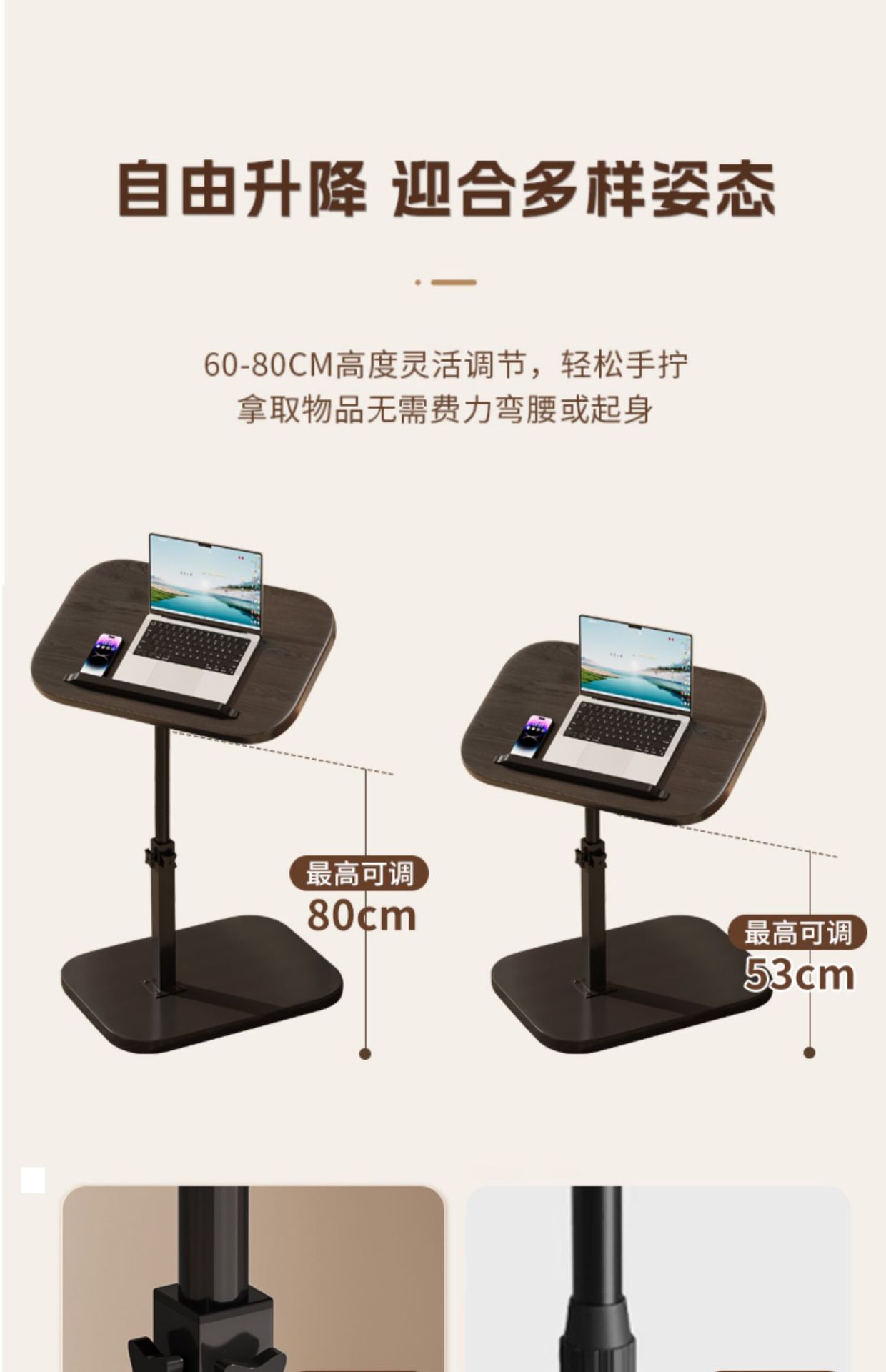 「轻巧灵动!复古多功能茶几」床边桌居家日用可移动升降电脑桌简易学生书桌卧室宿舍学习简约小桌子