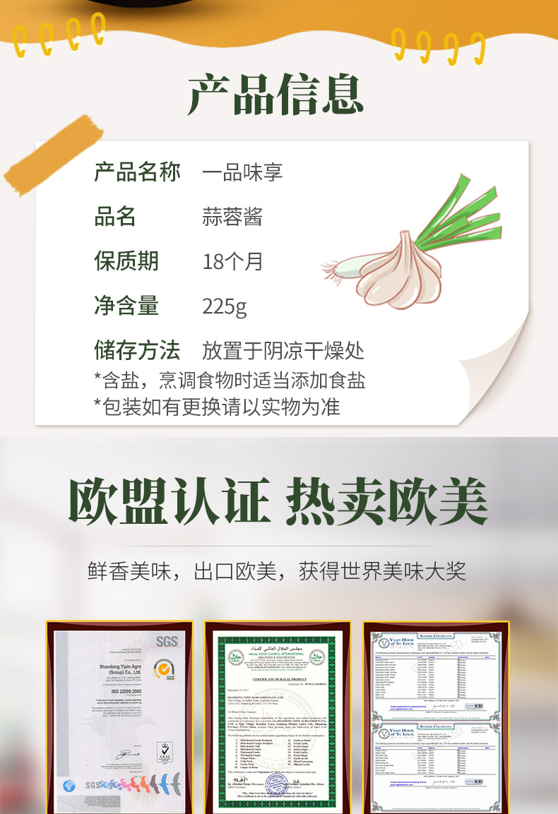 一品味享 蒜蓉酱 225g大蒜泥海鲜粉丝扇贝花甲生蚝火锅烤肉蘸料调料