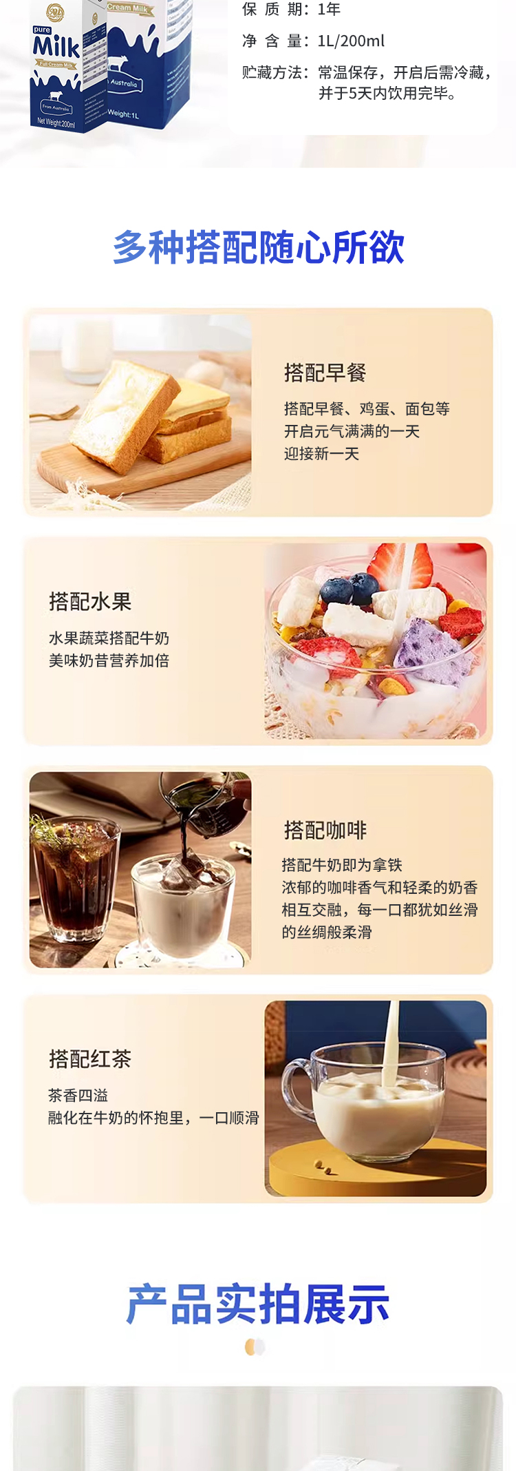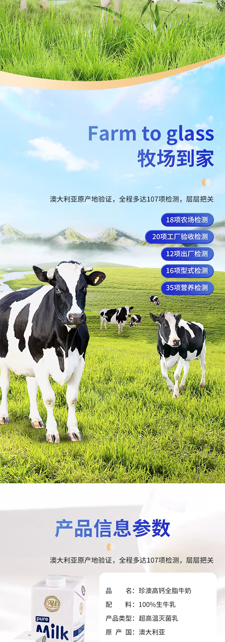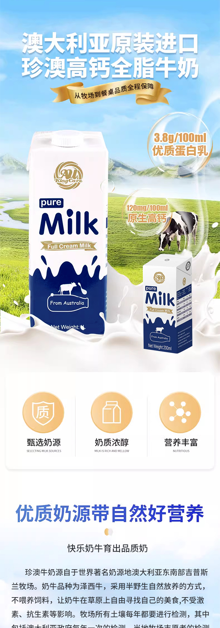 澳大利亚进口珍澳高钙全脂牛奶200ml-1L