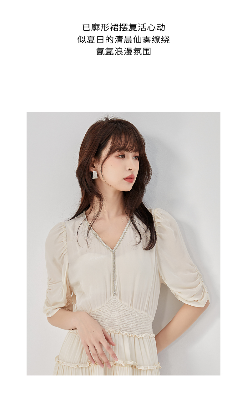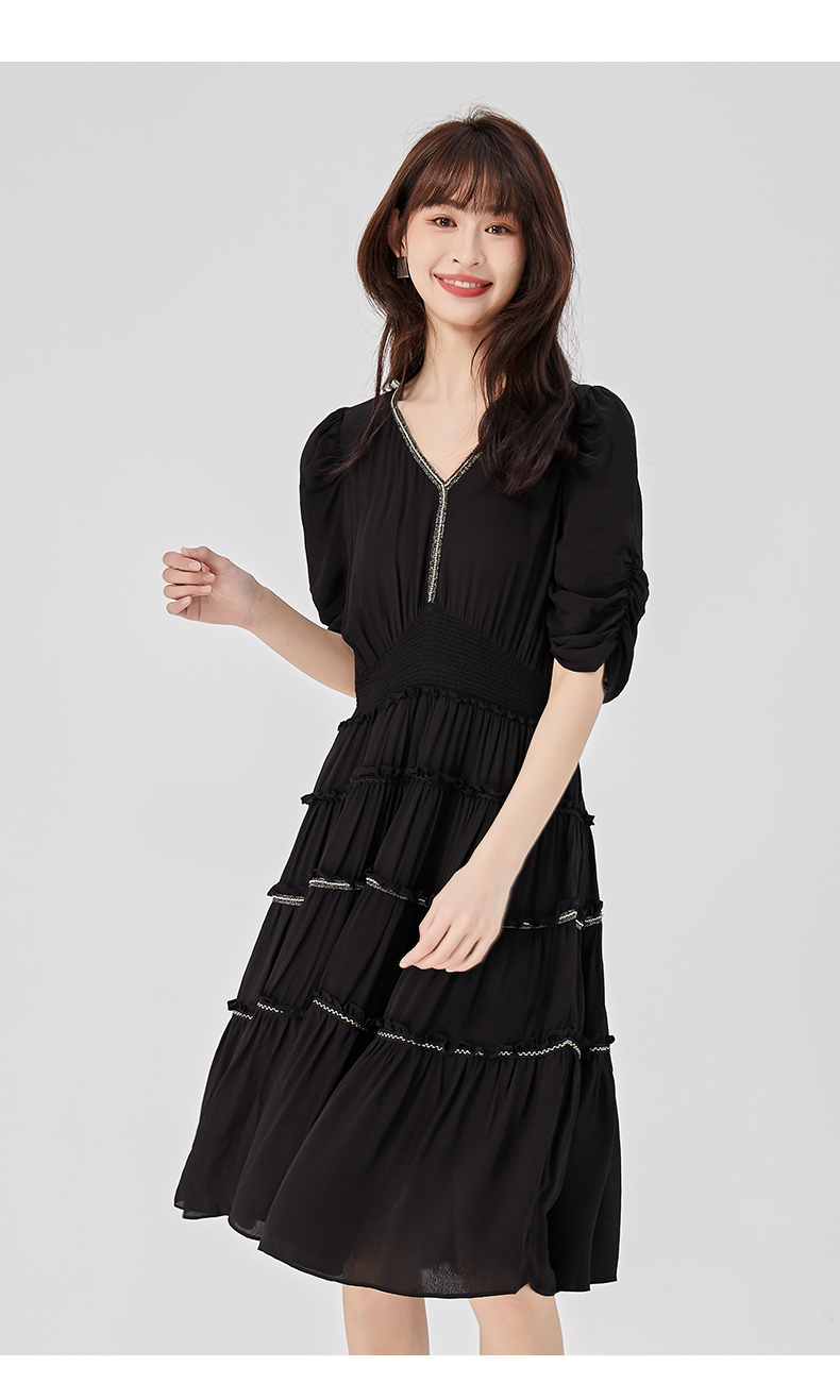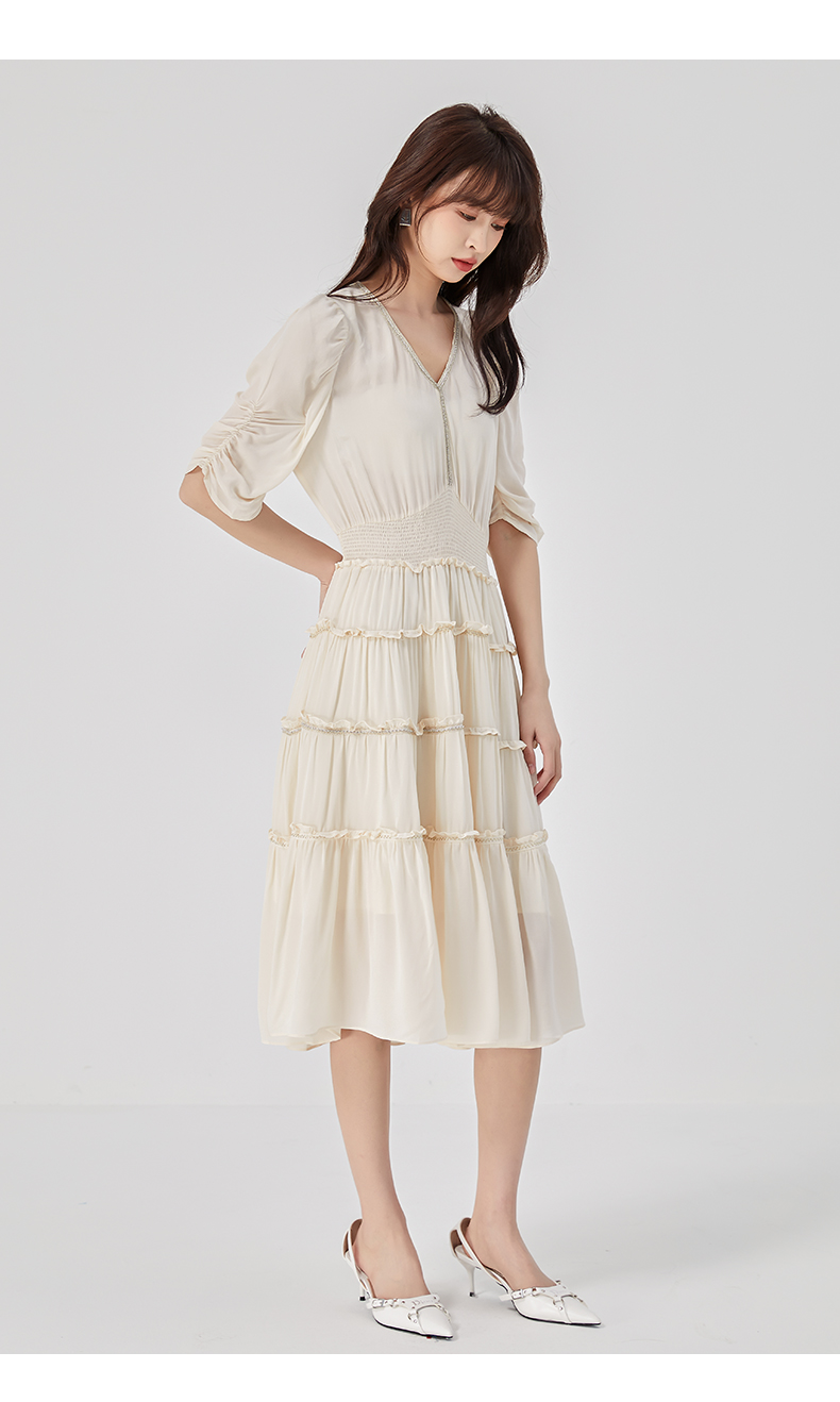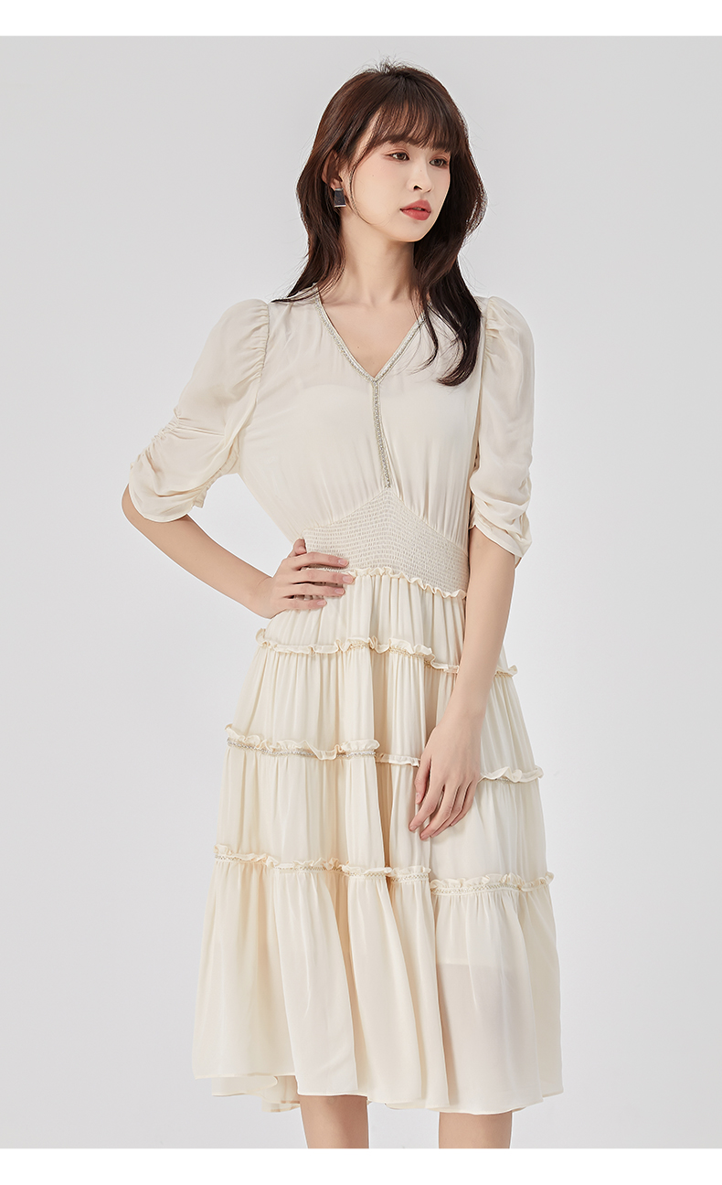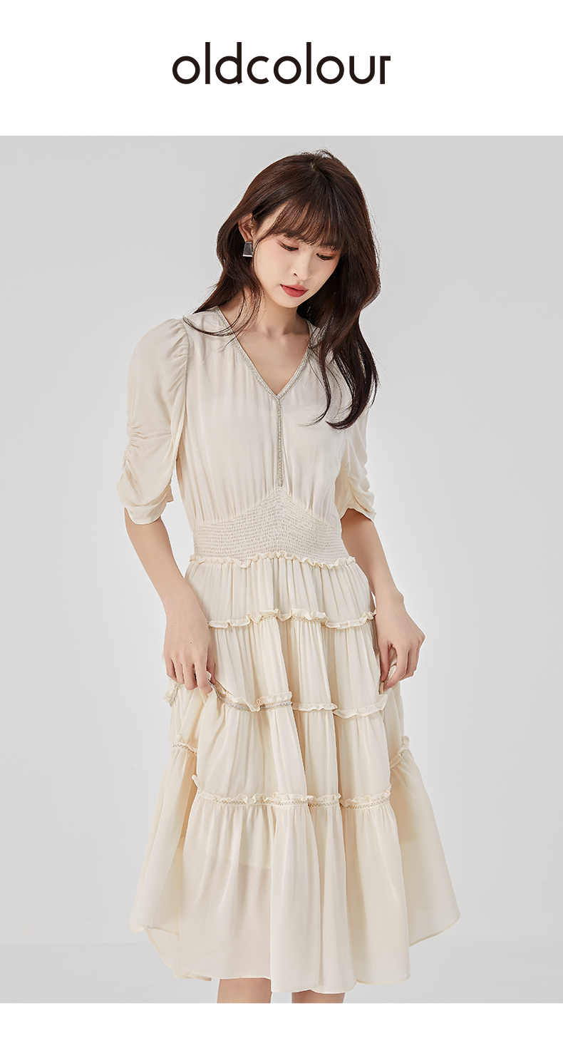 oldcolour2023夏季新款法式气质优雅V领高腰蛋糕连衣裙O24101536