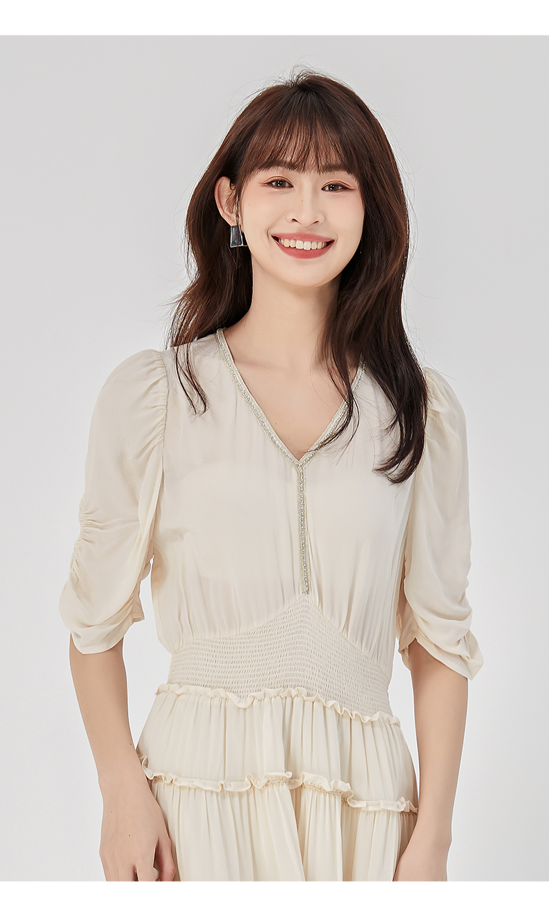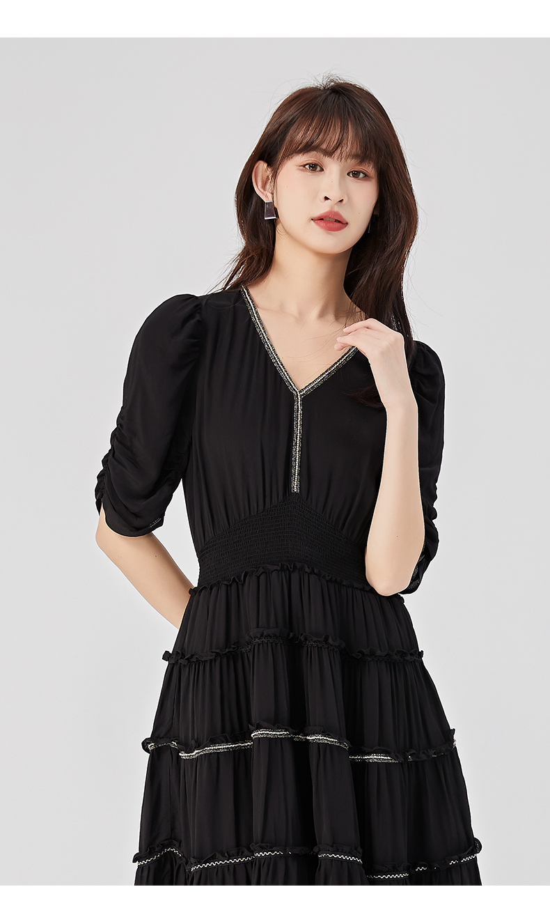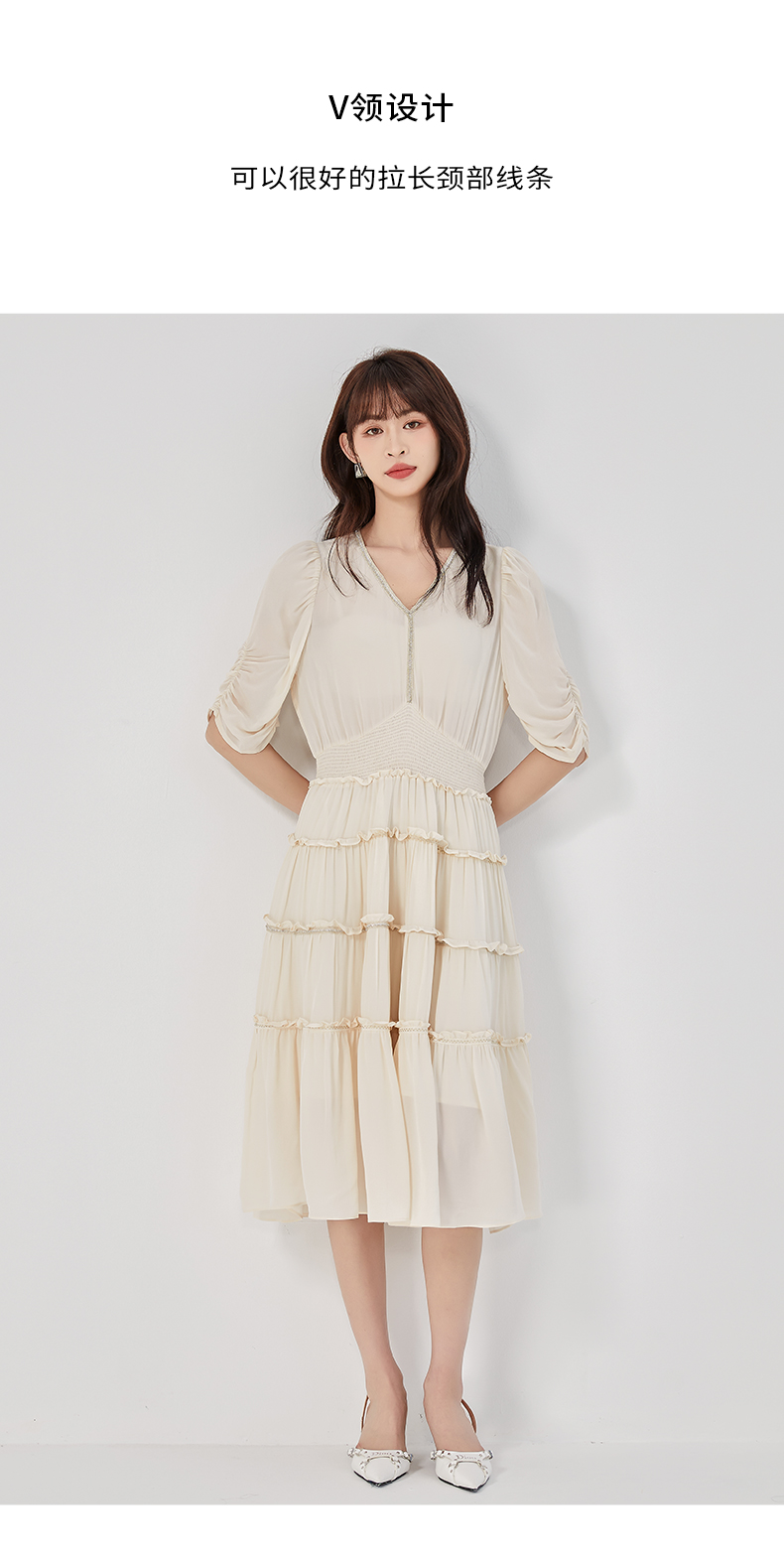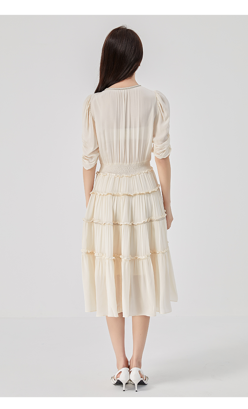 oldcolour2023夏季新款法式气质优雅V领高腰蛋糕连衣裙O24101536