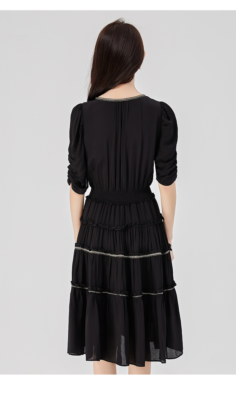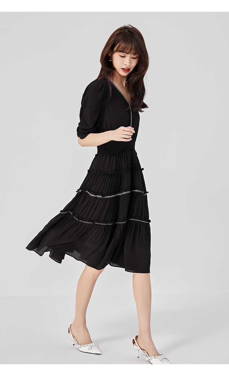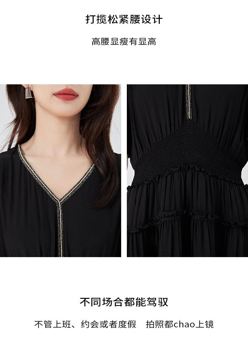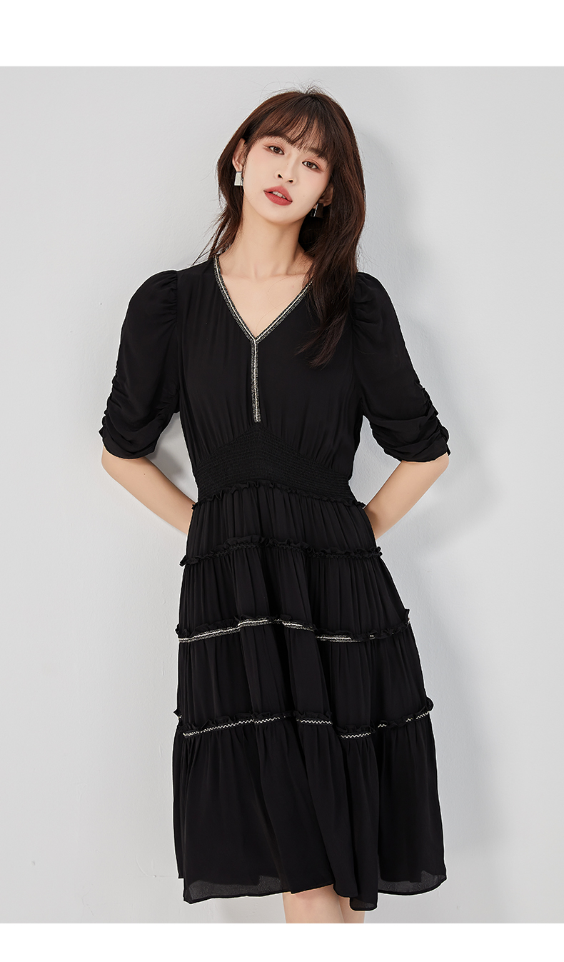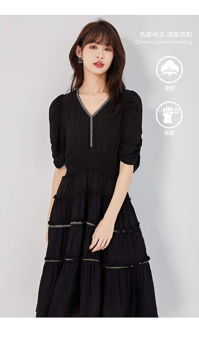 oldcolour2023夏季新款法式气质优雅V领高腰蛋糕连衣裙O24101536