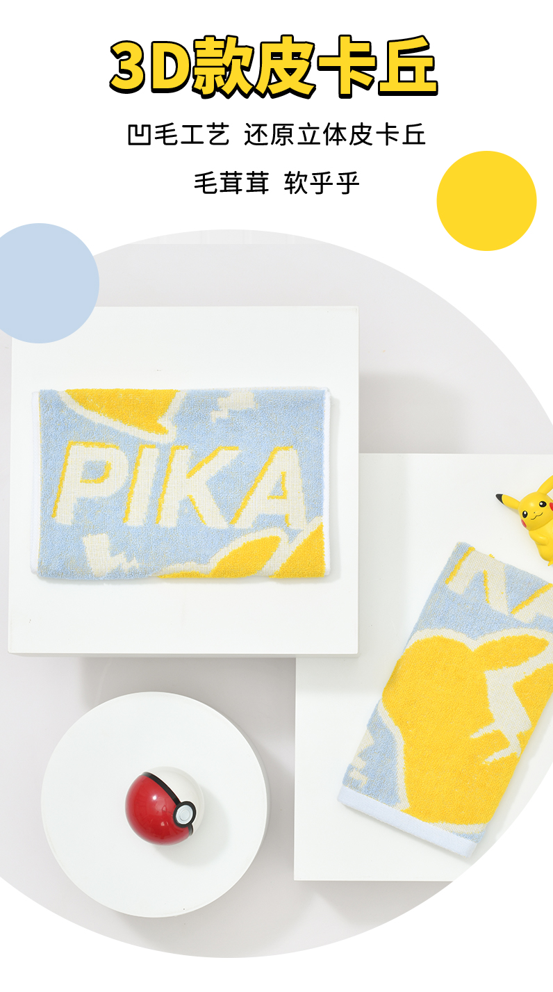 【 3D款皮卡丘毛巾】宝可梦正版联名 优质新疆棉 超吸水85°不掉色