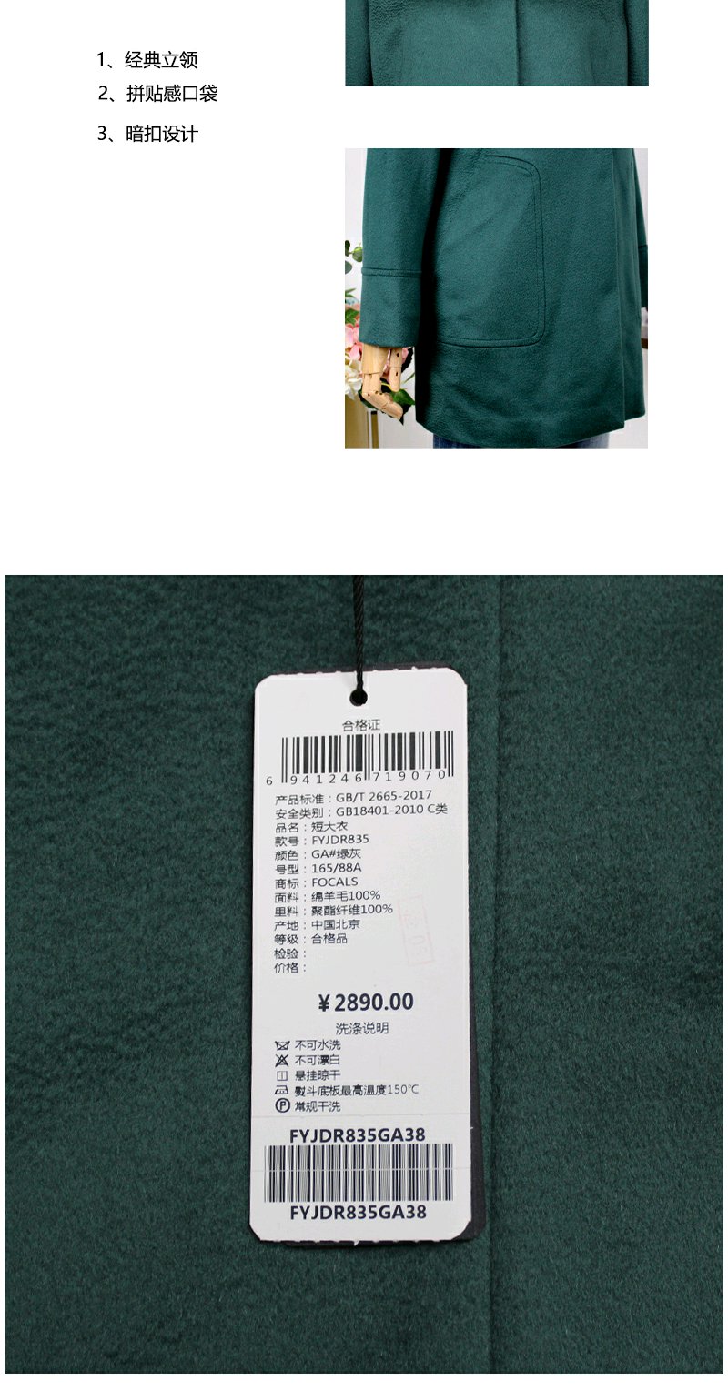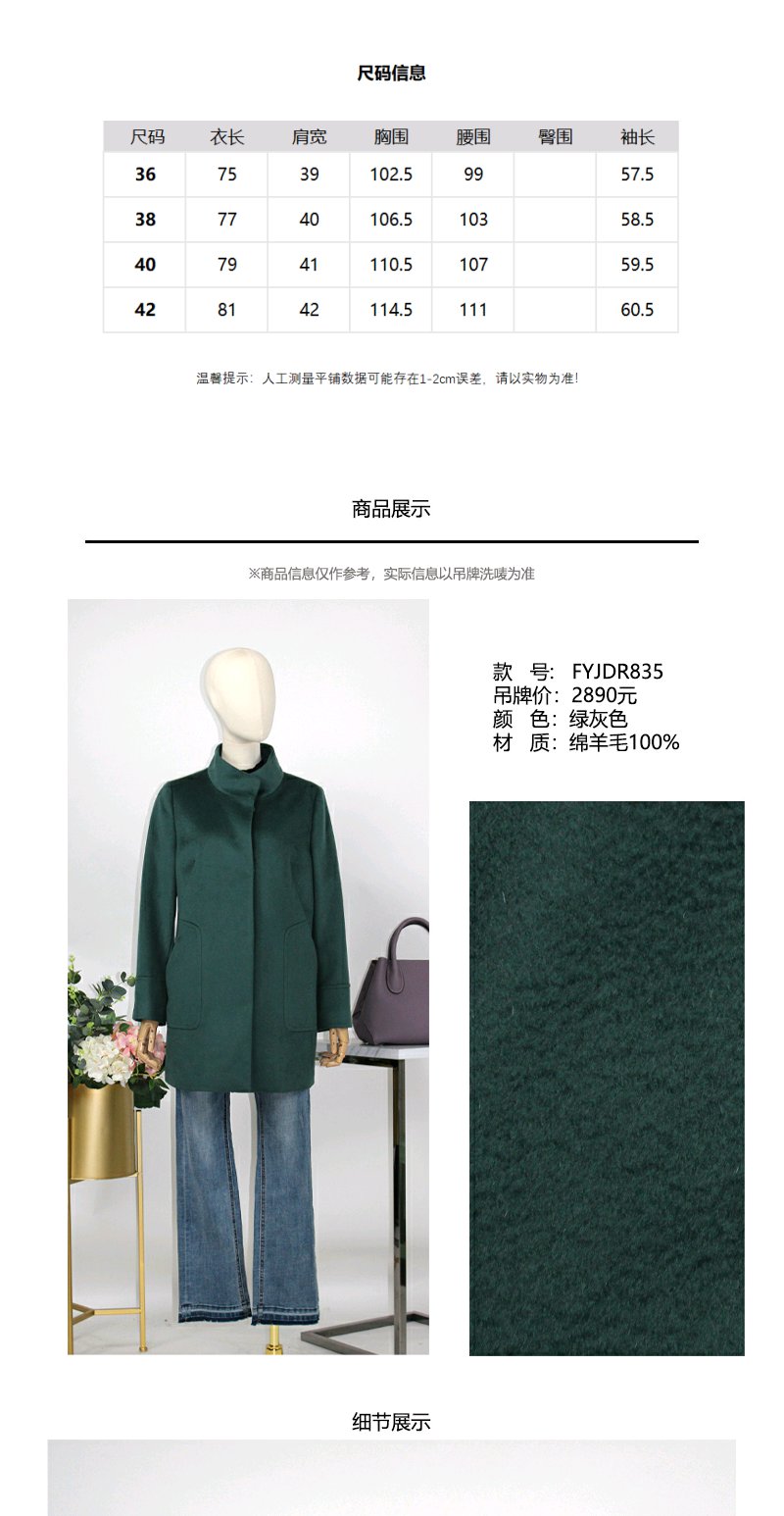 FOCALS福柯斯冬季立领中长款纯色羊毛羊绒大衣外套FYJDR835GA