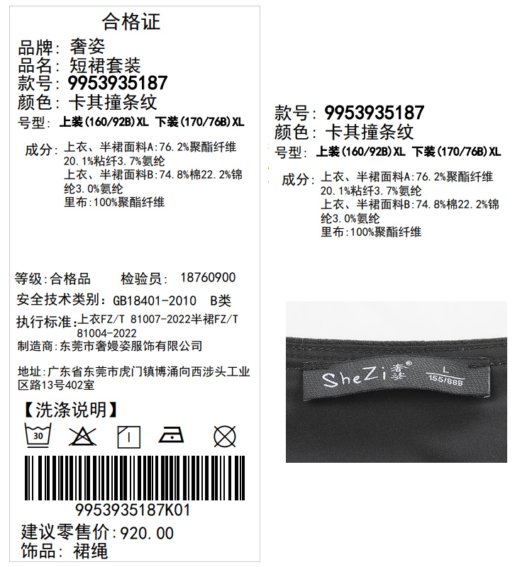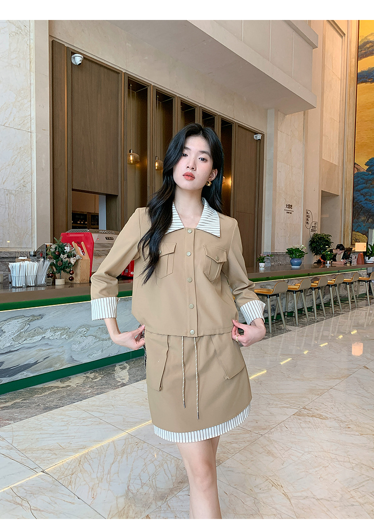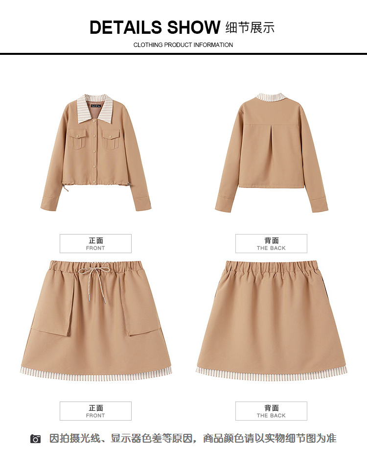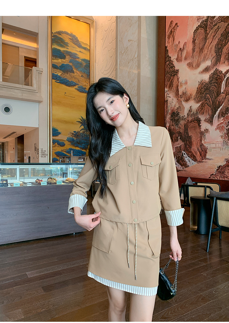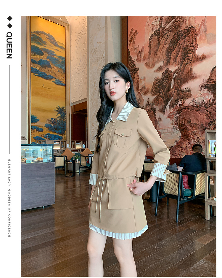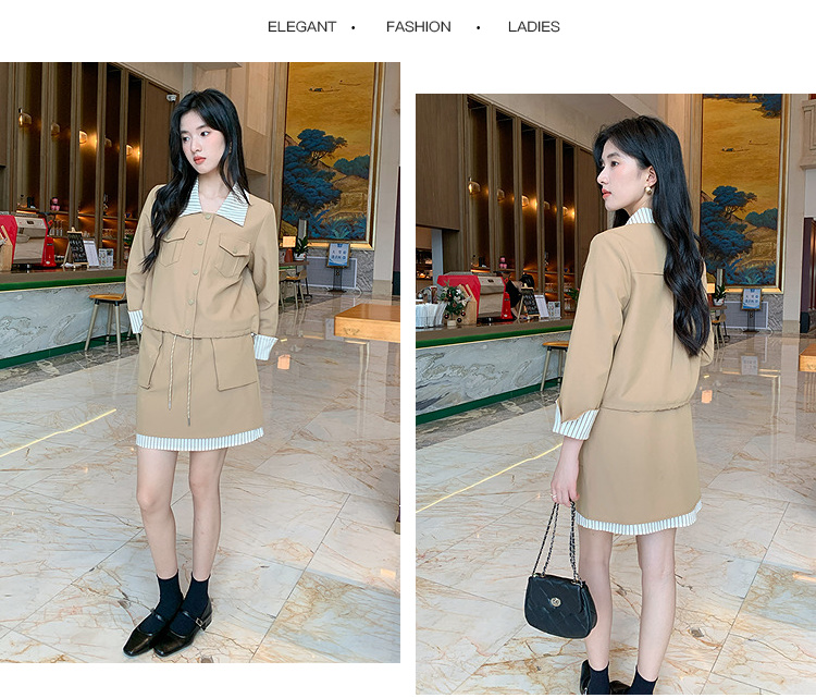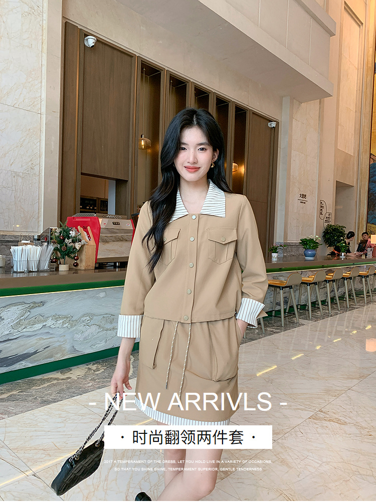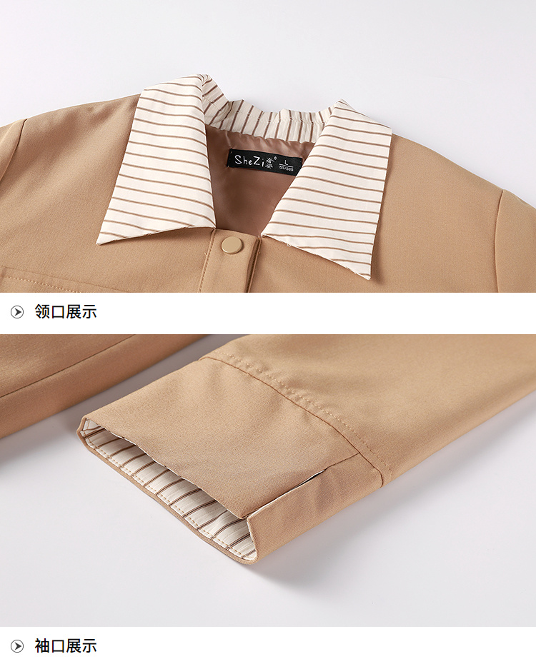 奢姿大码女装2025秋季时尚条纹装饰短外套套装胖妹妹休闲两件套9953935187