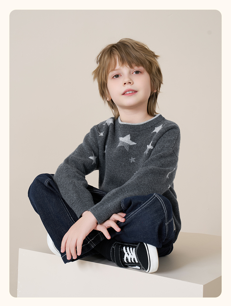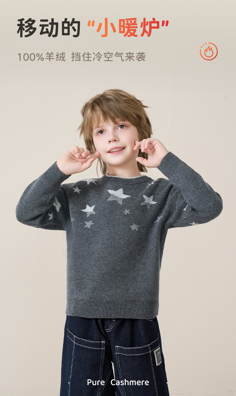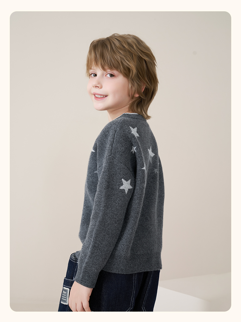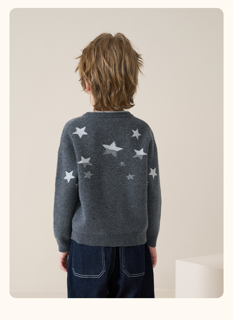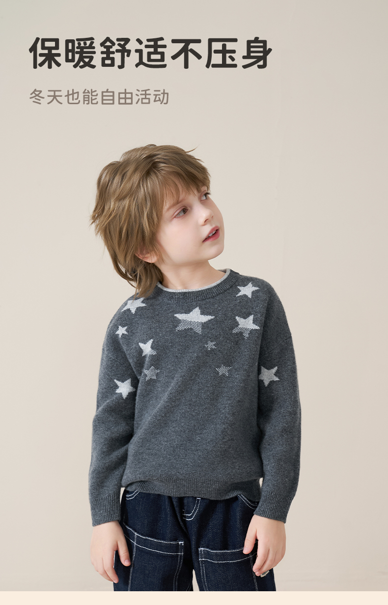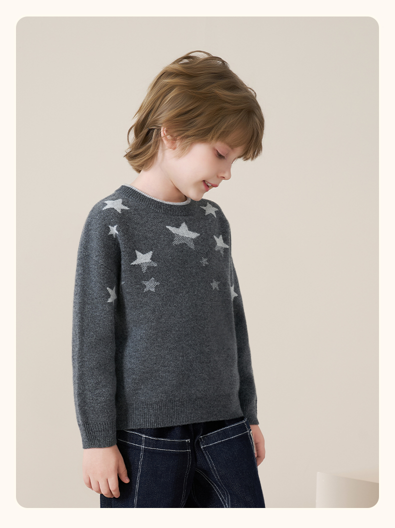 mettekids儿童100%羊绒衫2025秋冬男童圆领针织毛衣星星提花打底