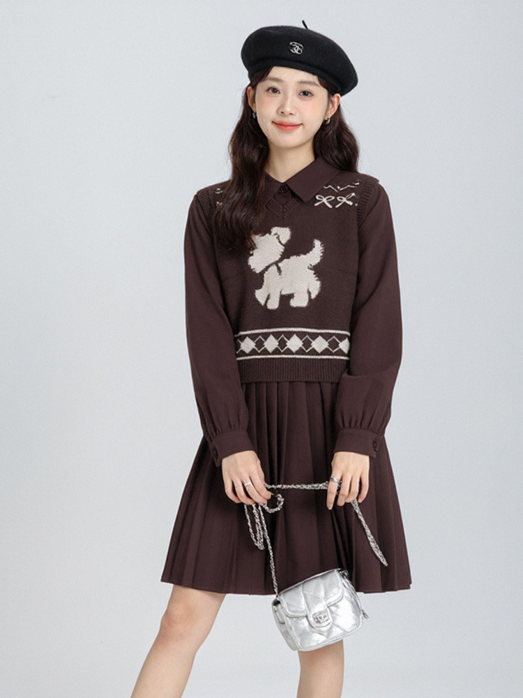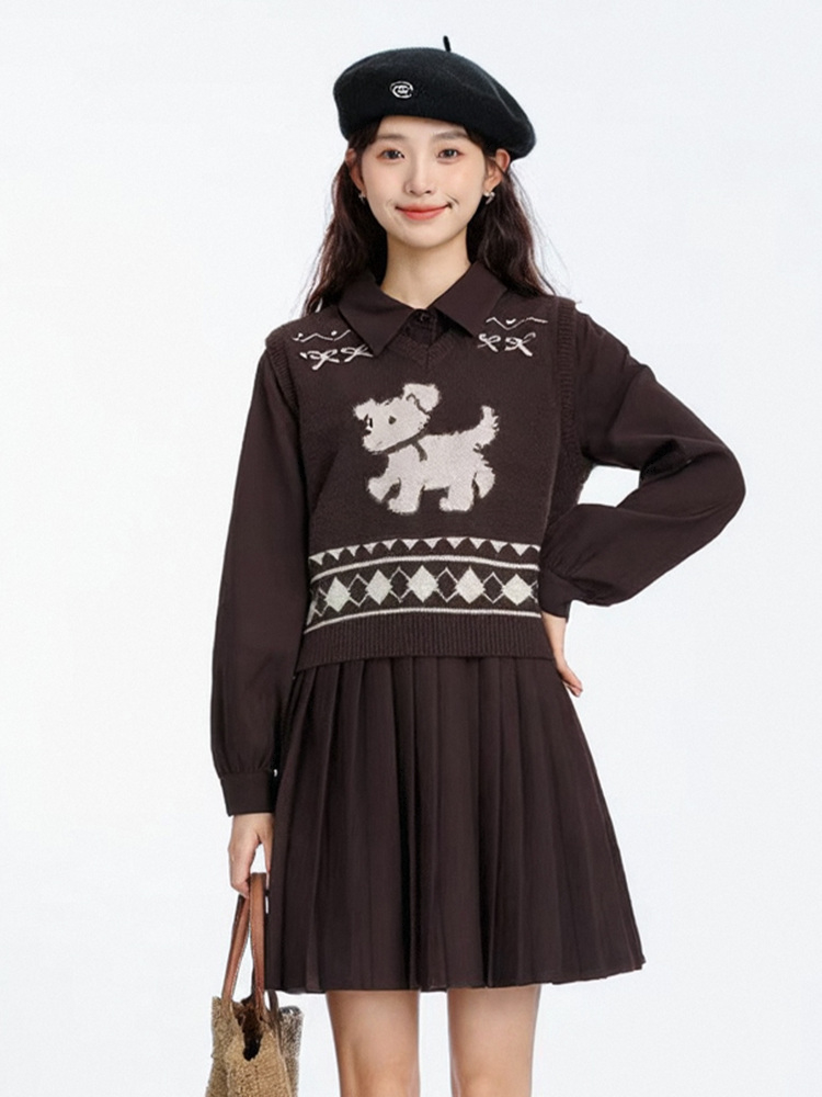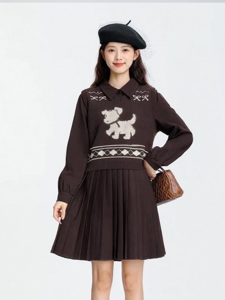 奢姿大码女装2025冬季时尚小狗针织马甲套装胖妹妹气质休闲两件套9554635281AB