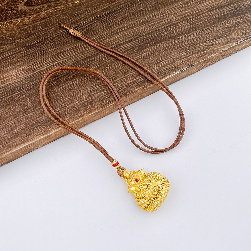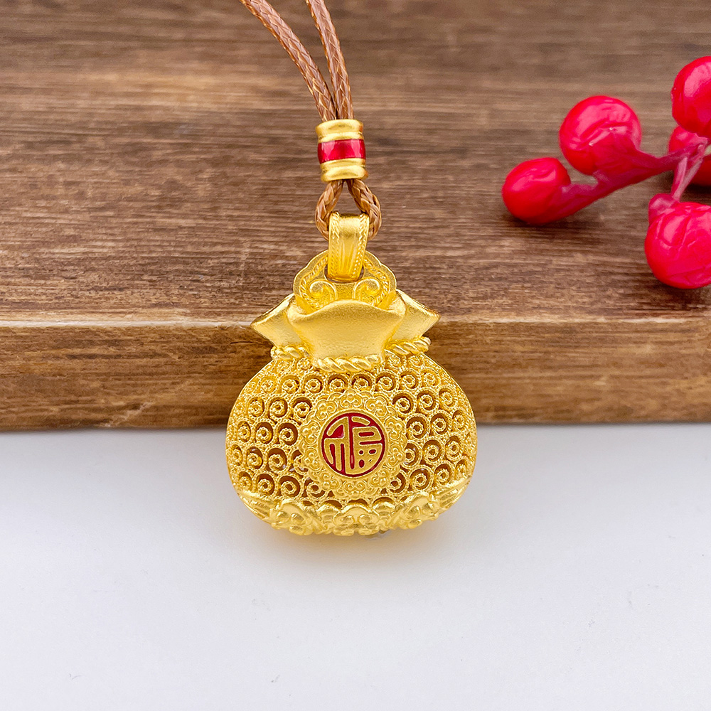 【限时克减150元】足金999.9 #福袋 古法挂绳镂空花丝珐琅福字麒麟献瑞福袋吊坠(含配件)(ANWZGFDZ00432-2)(预售产品下单后不退款不退货不换货不补差价)