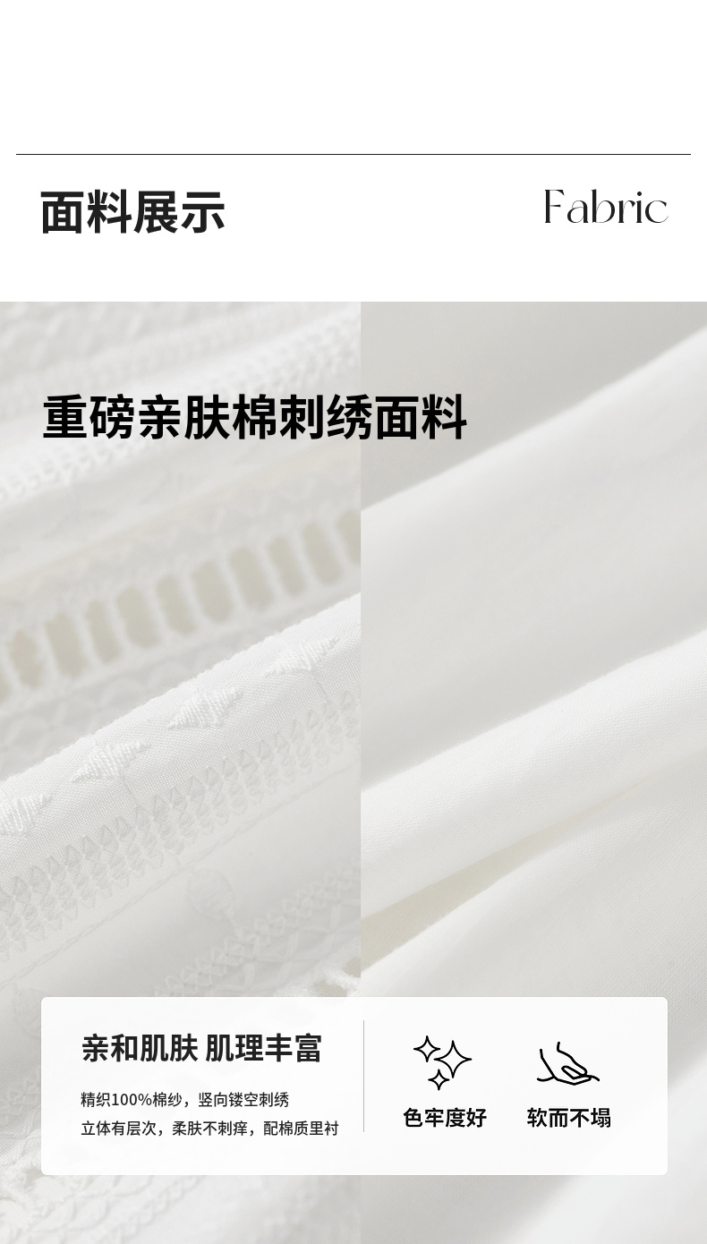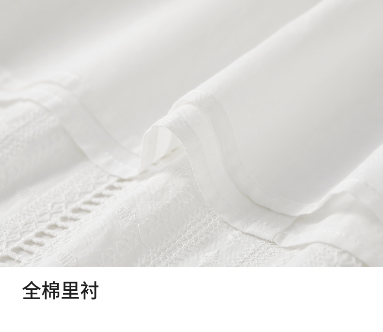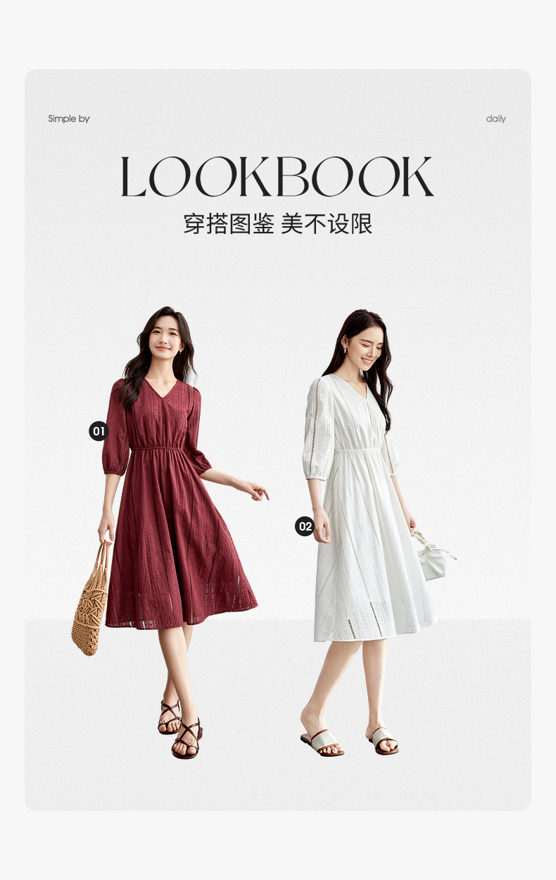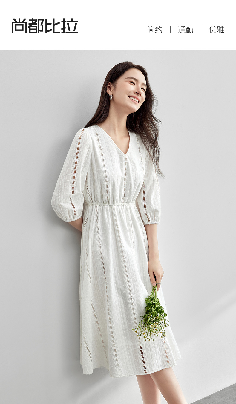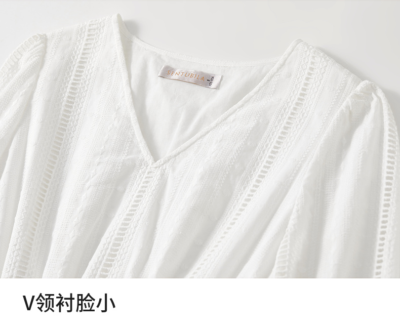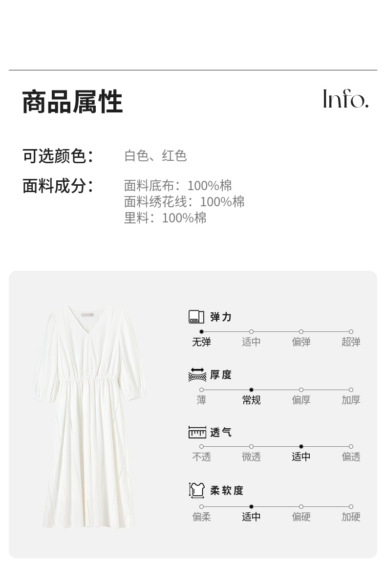 【内购】优雅度假V领松紧高腰七分灯笼袖100%亲肤棉A字连衣裙-151L58242