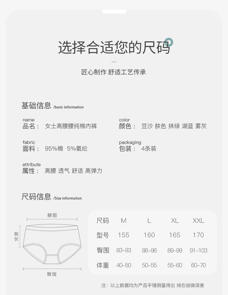 【新人首单专用】洁丽雅舒适高腰棉感亲肤4条装内裤女棉质收腹提臀透气女士内裤