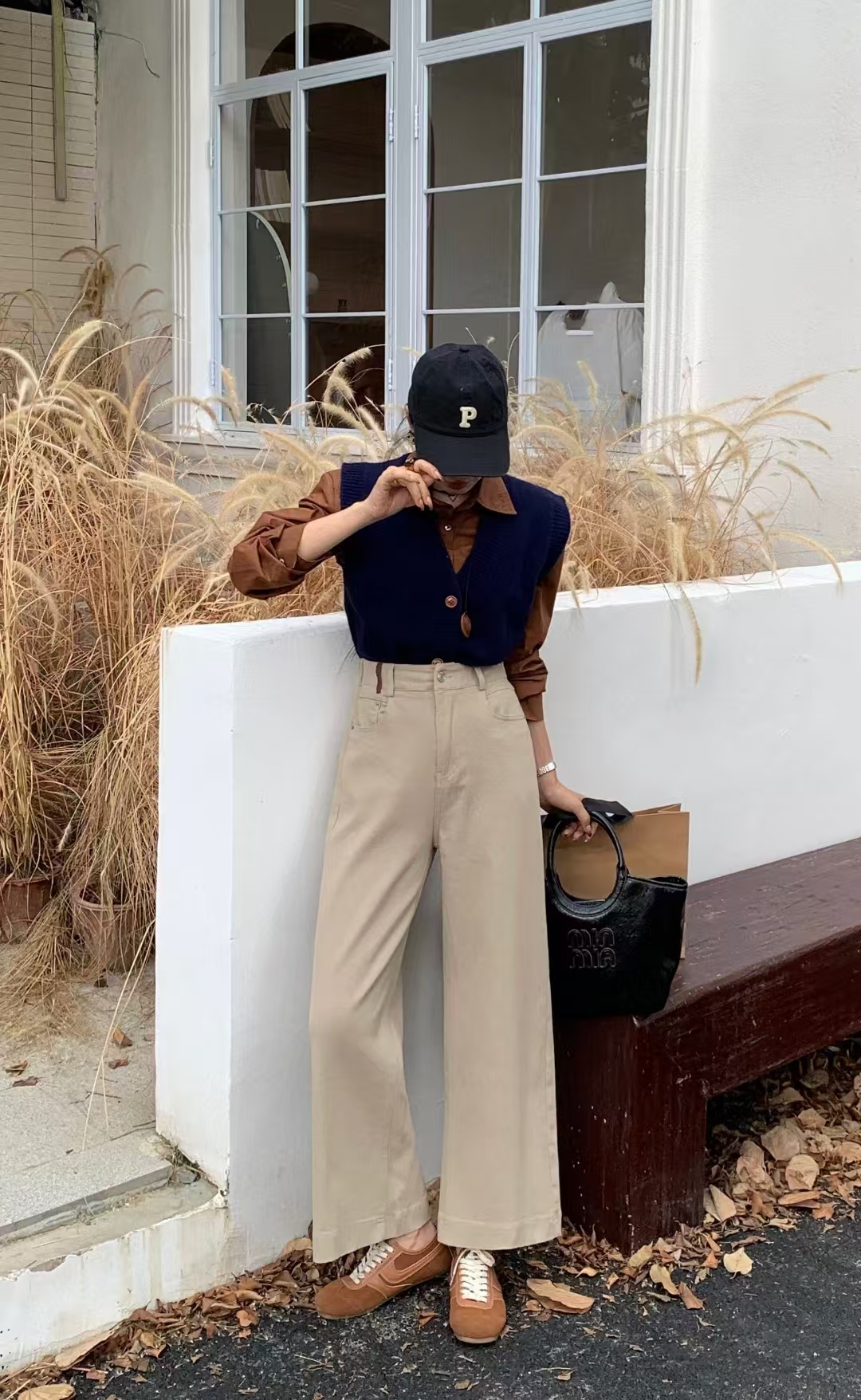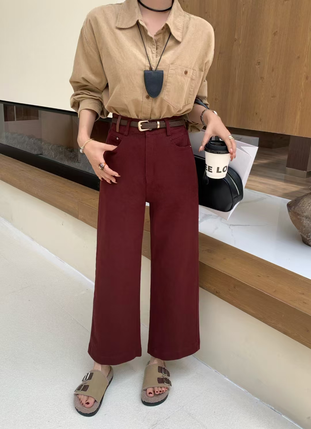23067~# 九分直筒洗水棉休闲裤 遮肉显瘦~简约窄版 上身时尚又大气