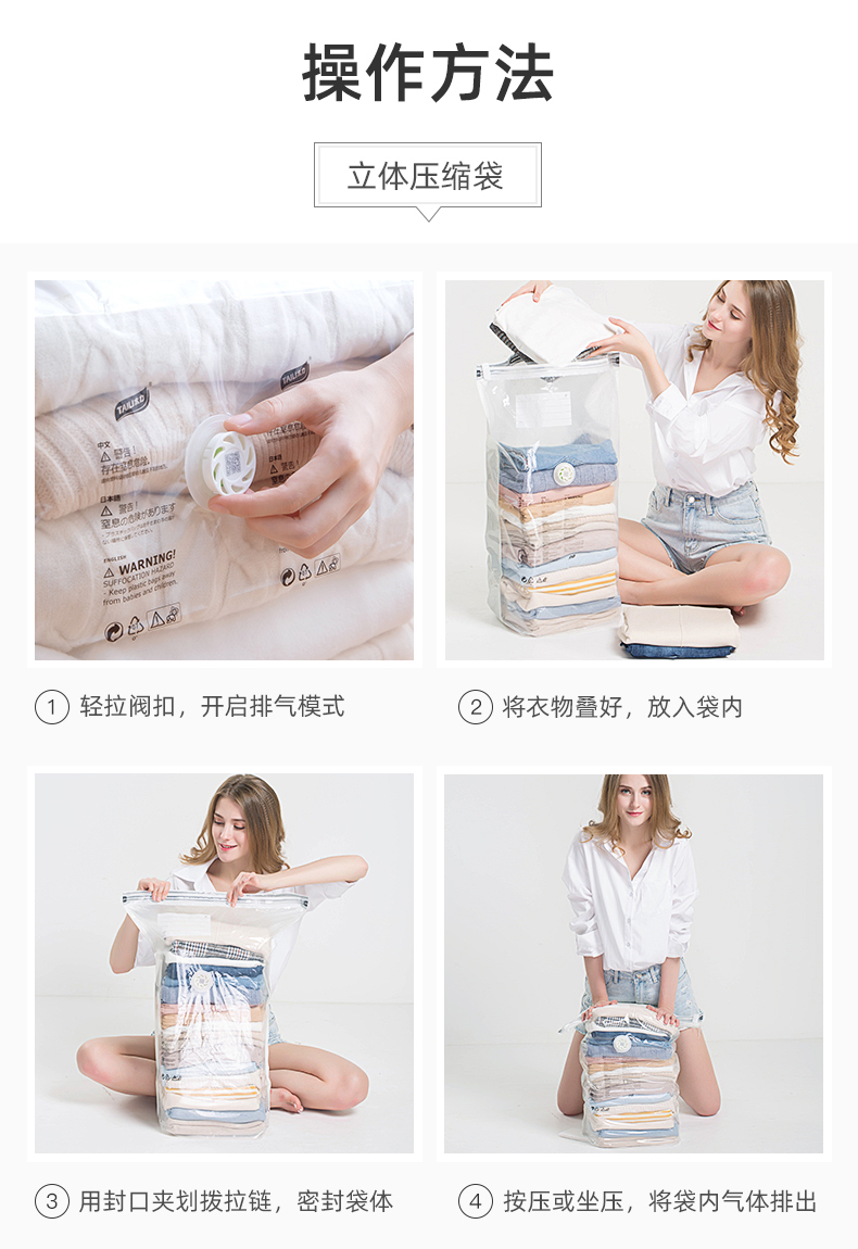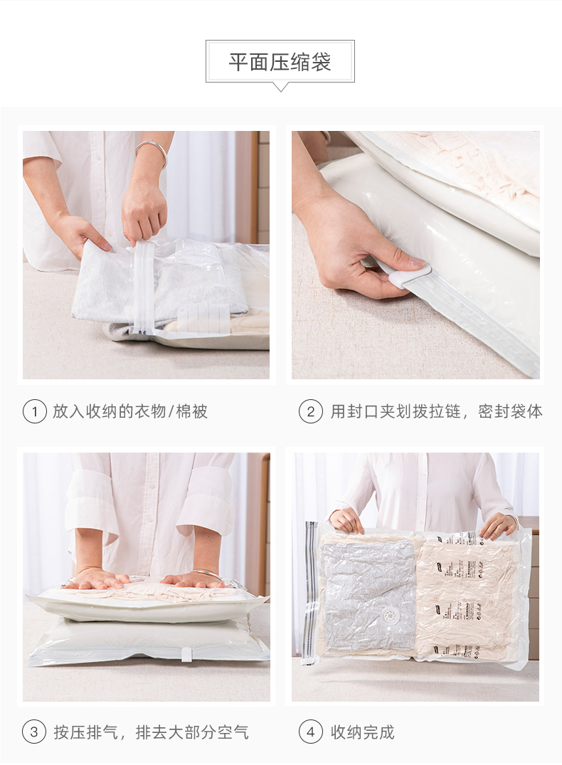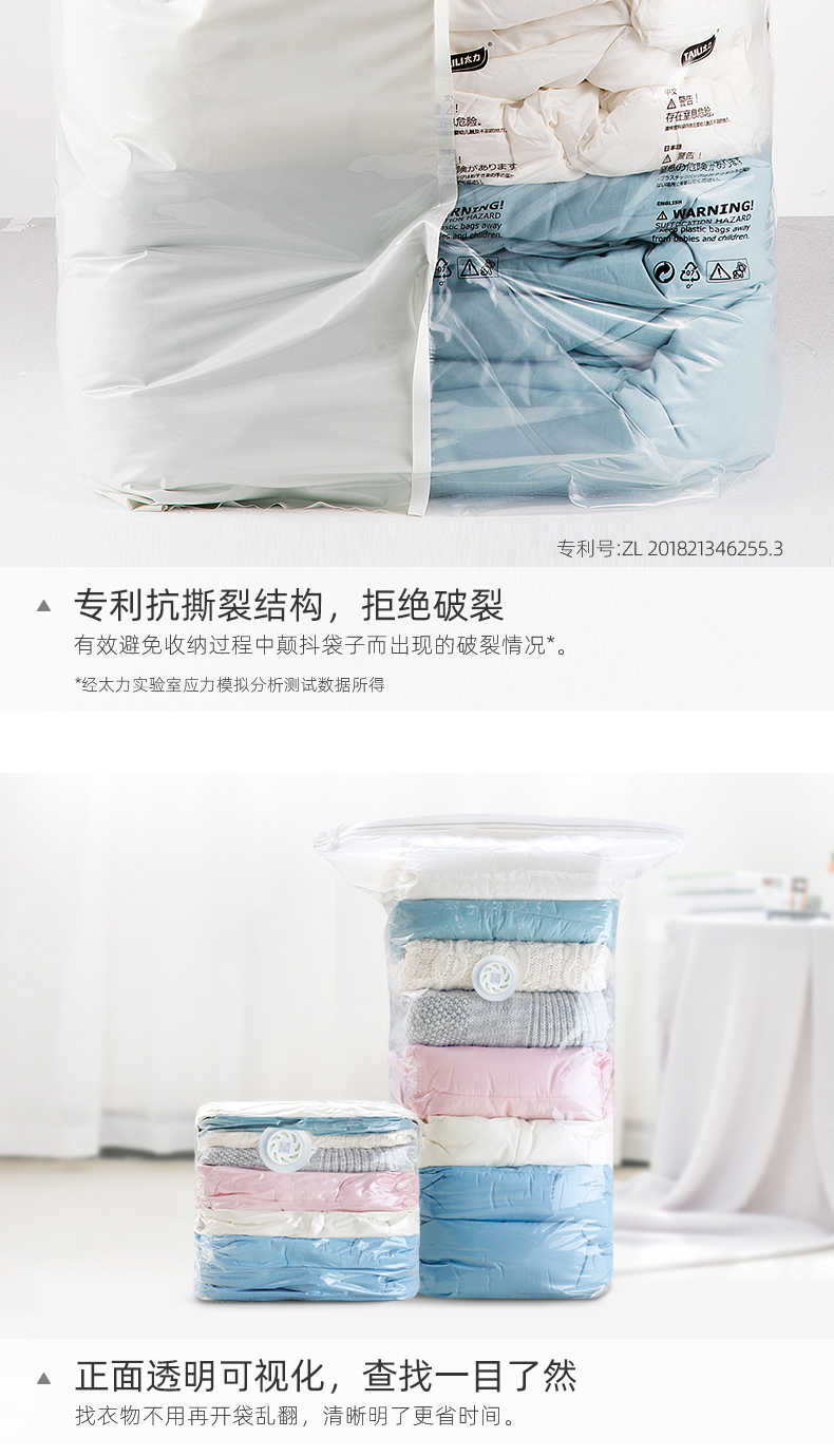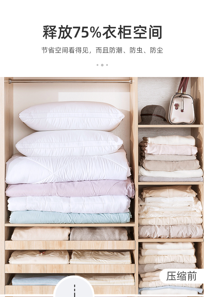 年底每家每户都要大扫除,彻彻底底清洁一边,把一些不用的衣服重新收拾一下,归归类,换季的时候也总有一些用不到的厚被子羽绒服大衣毛衣之类的,占领了很大一部分空间,以至于各种不方便!老米墙裂推荐这款衣物收纳神器,一个压缩袋=衣架+收纳袋+防尘罩,真的,超级,超级,收纳!非常节省空间!防尘袋采用PAPE材质,健康环保,安心无味!不仅能防菌、防霉、防虫、还能防尘、防潮、抗皱!好处多多~~