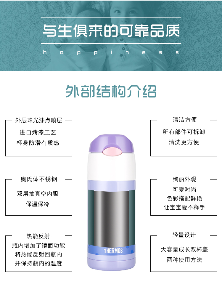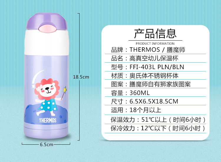 膳魔师lion系列不锈钢吸管杯360mlFFI403