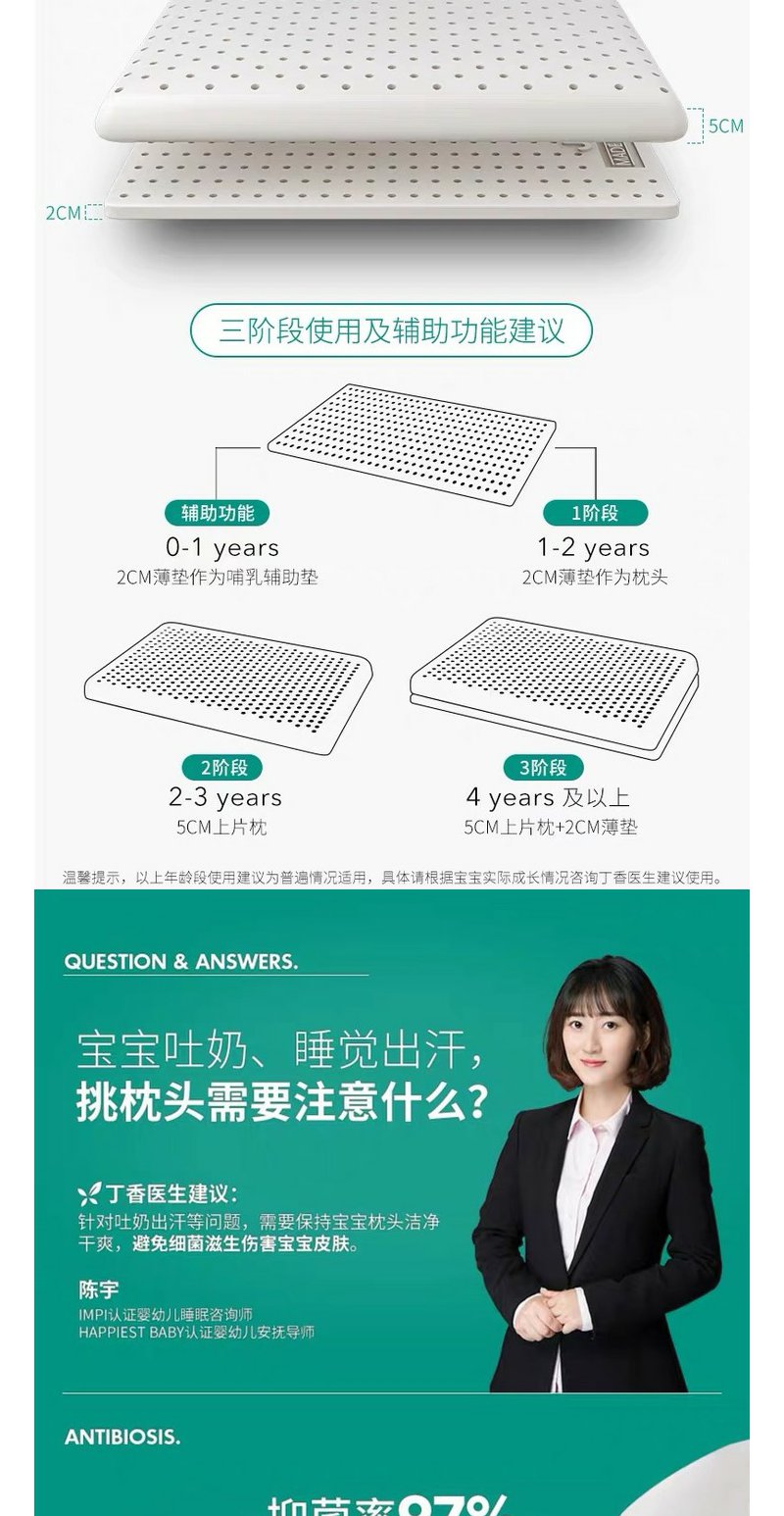 1-6岁儿童乳胶枕,丁香医生联名款
