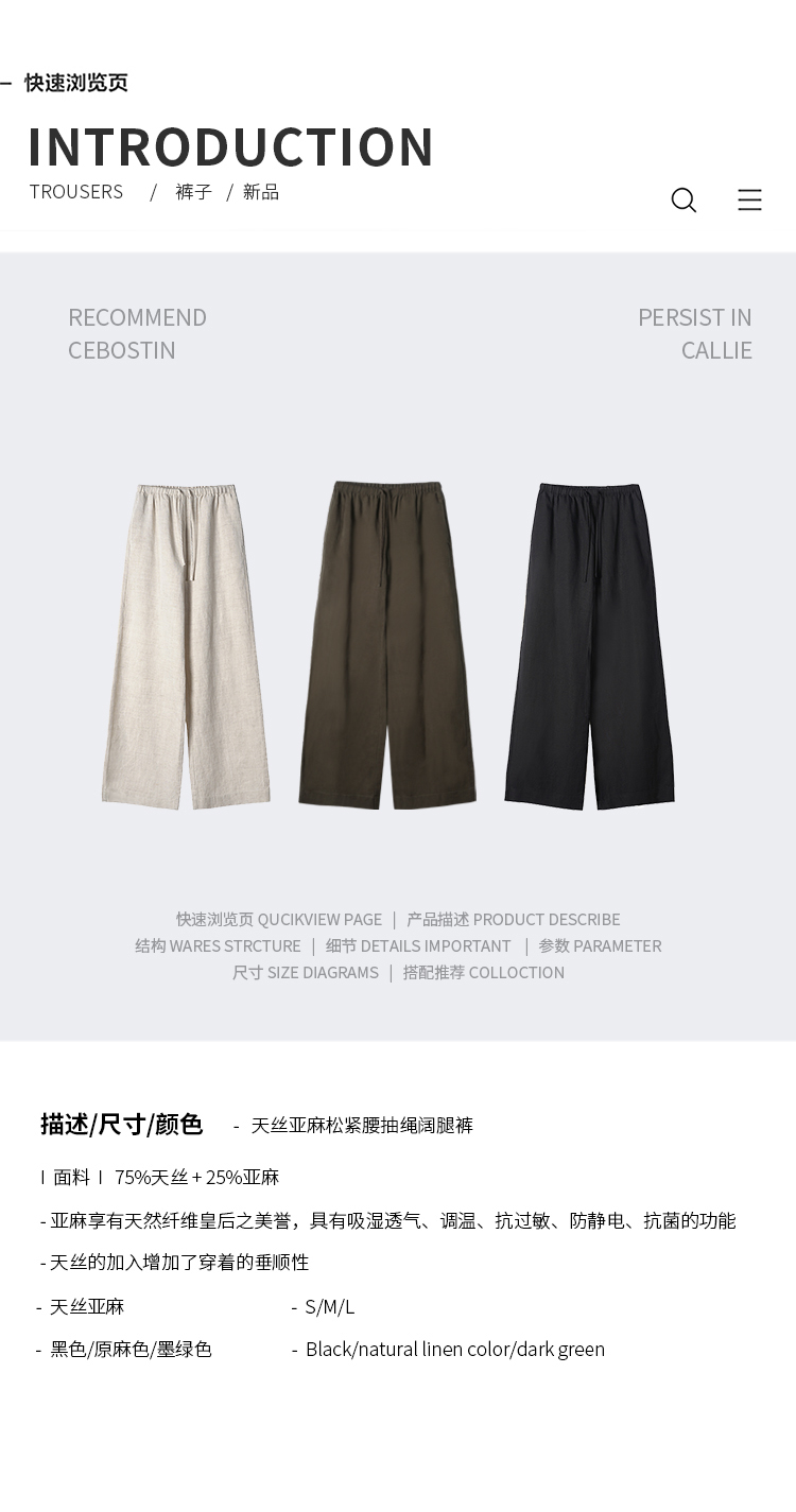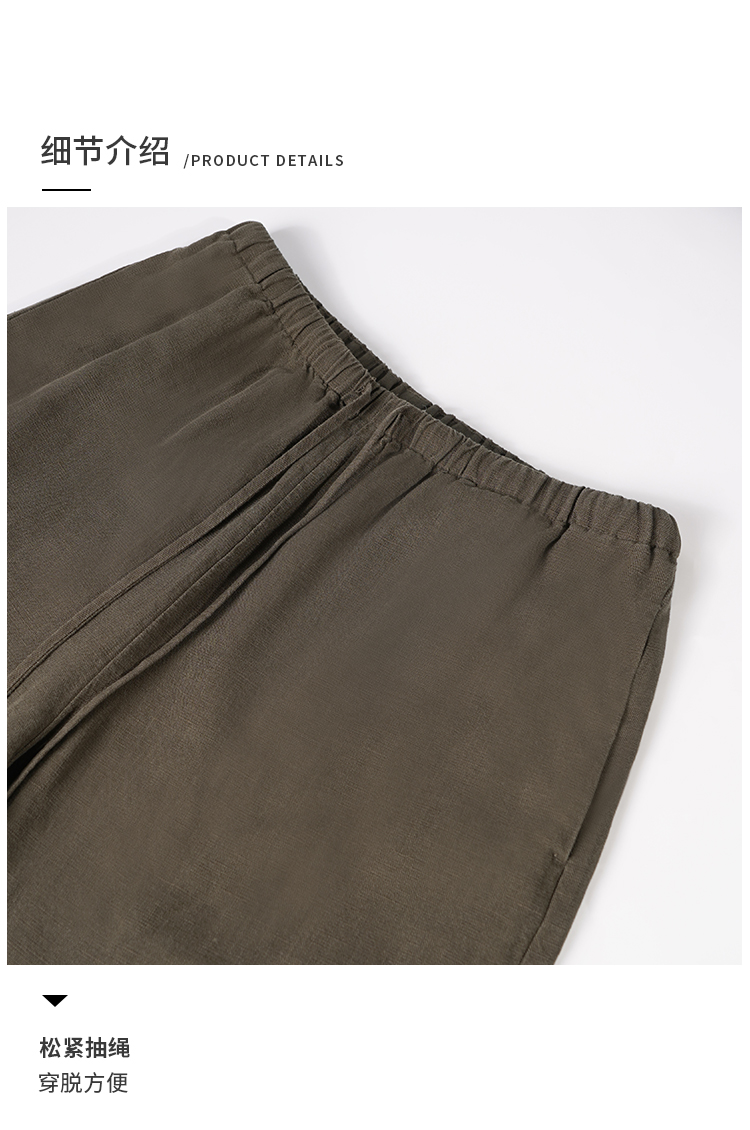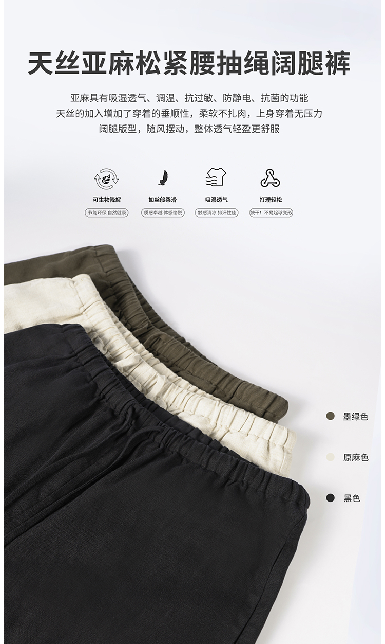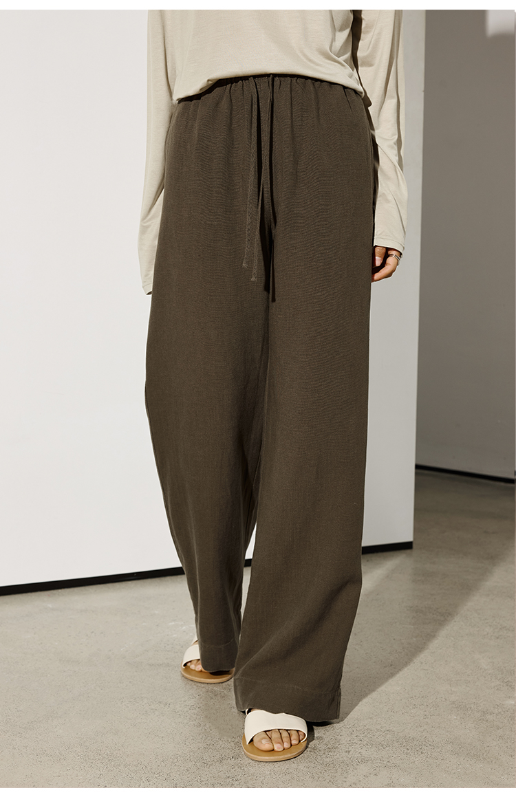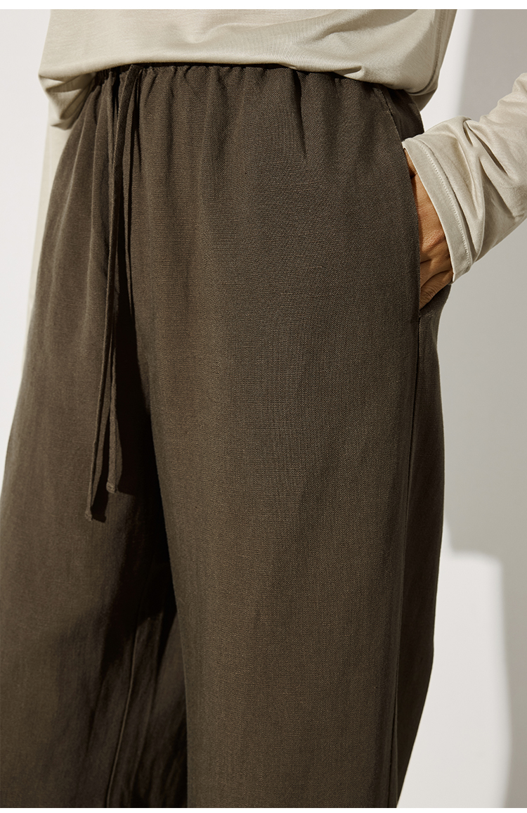 【75%天丝+25%亚麻】LILY MOON天丝亚麻松紧腰抽绳阔腿裤LM1228