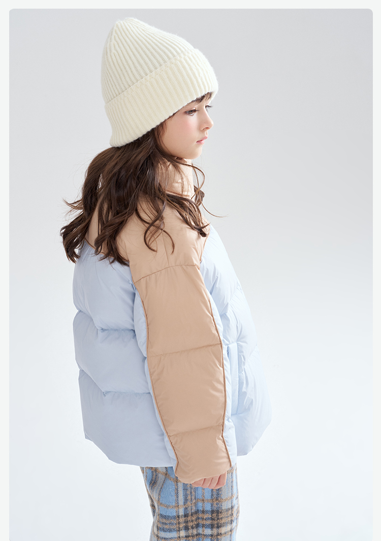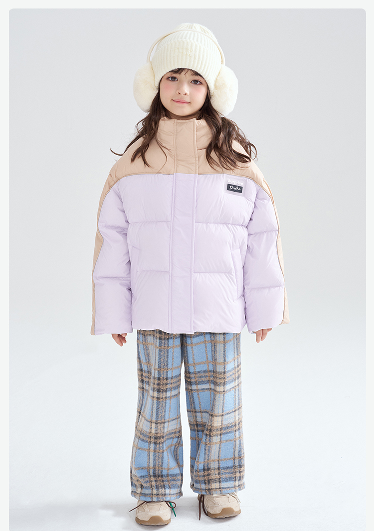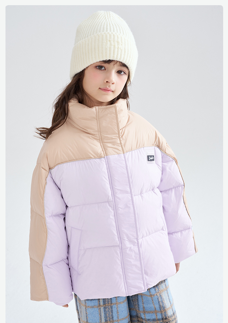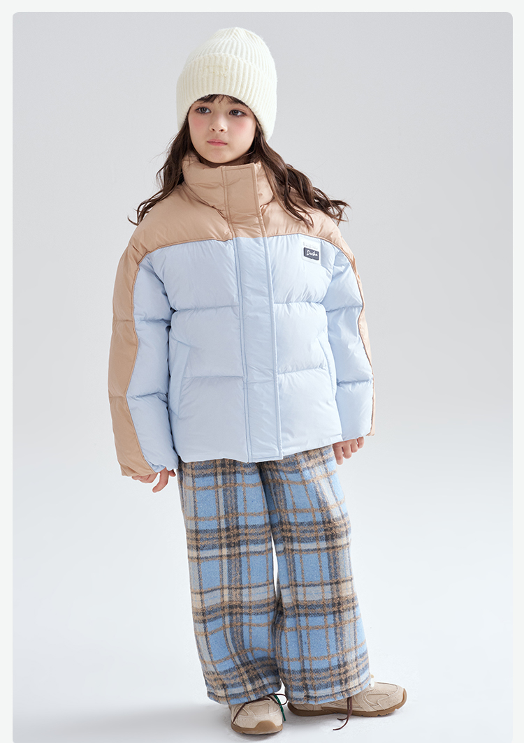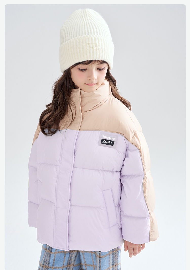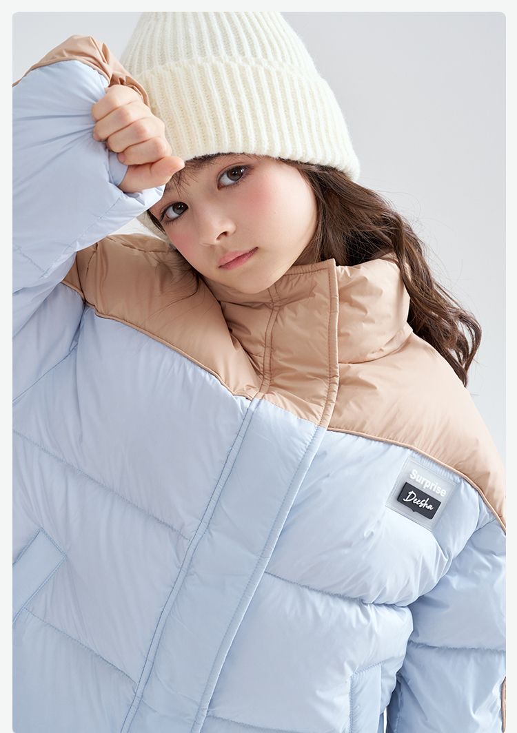笛莎Deesha 2025冬季女童时尚休闲三防拼色立领短款羽绒服