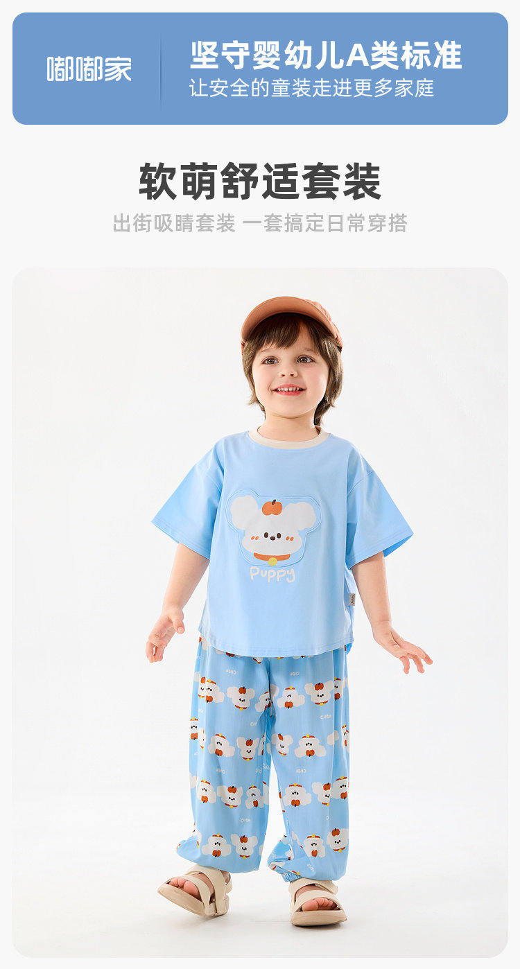 嘟嘟家儿童套装夏装男童短袖裤子夏款女童两件套夏季宝宝衣服D6BTZ199